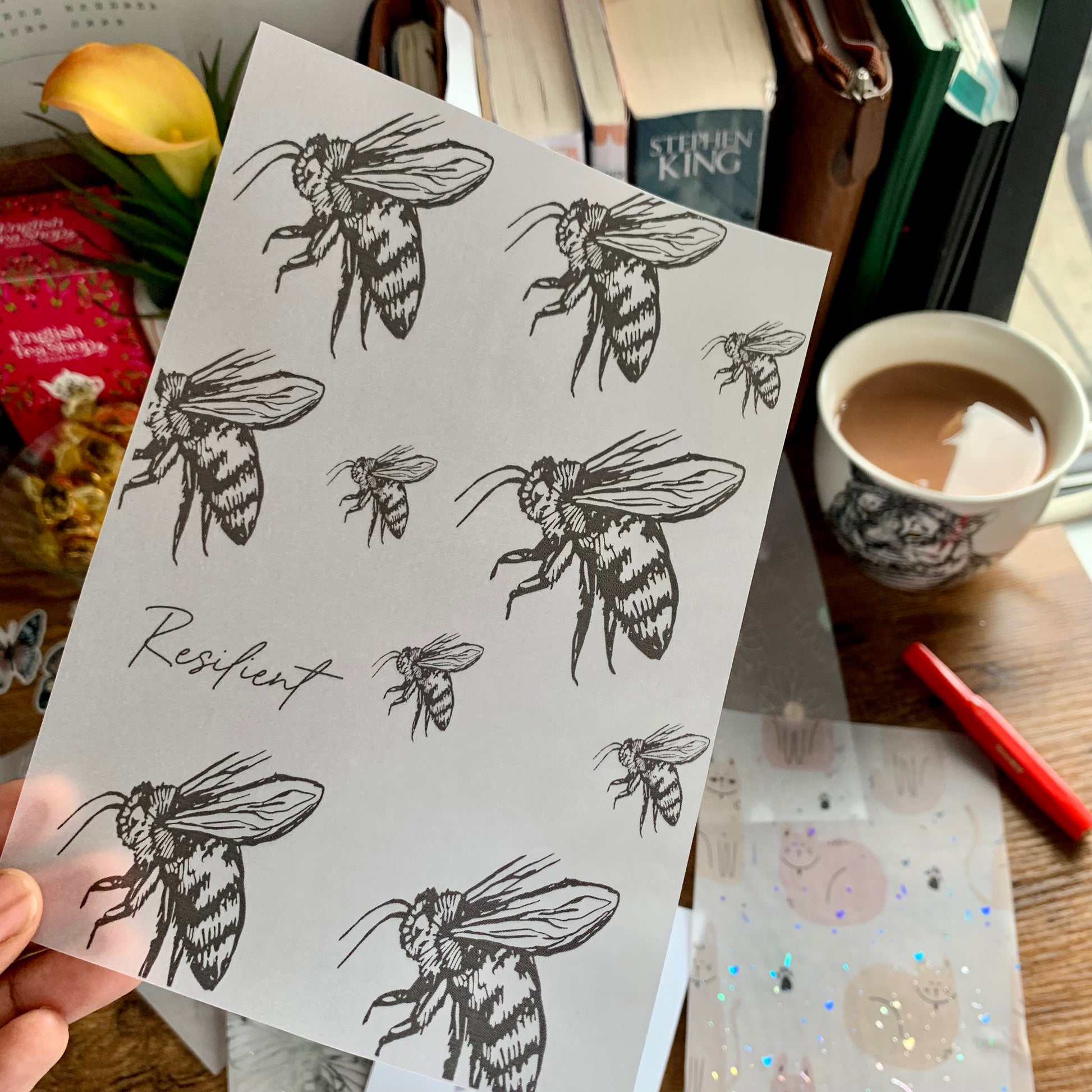 NEW Handmade foiled Bee pattern dashboard with hand drawn artwork great for decorating journals and planners.