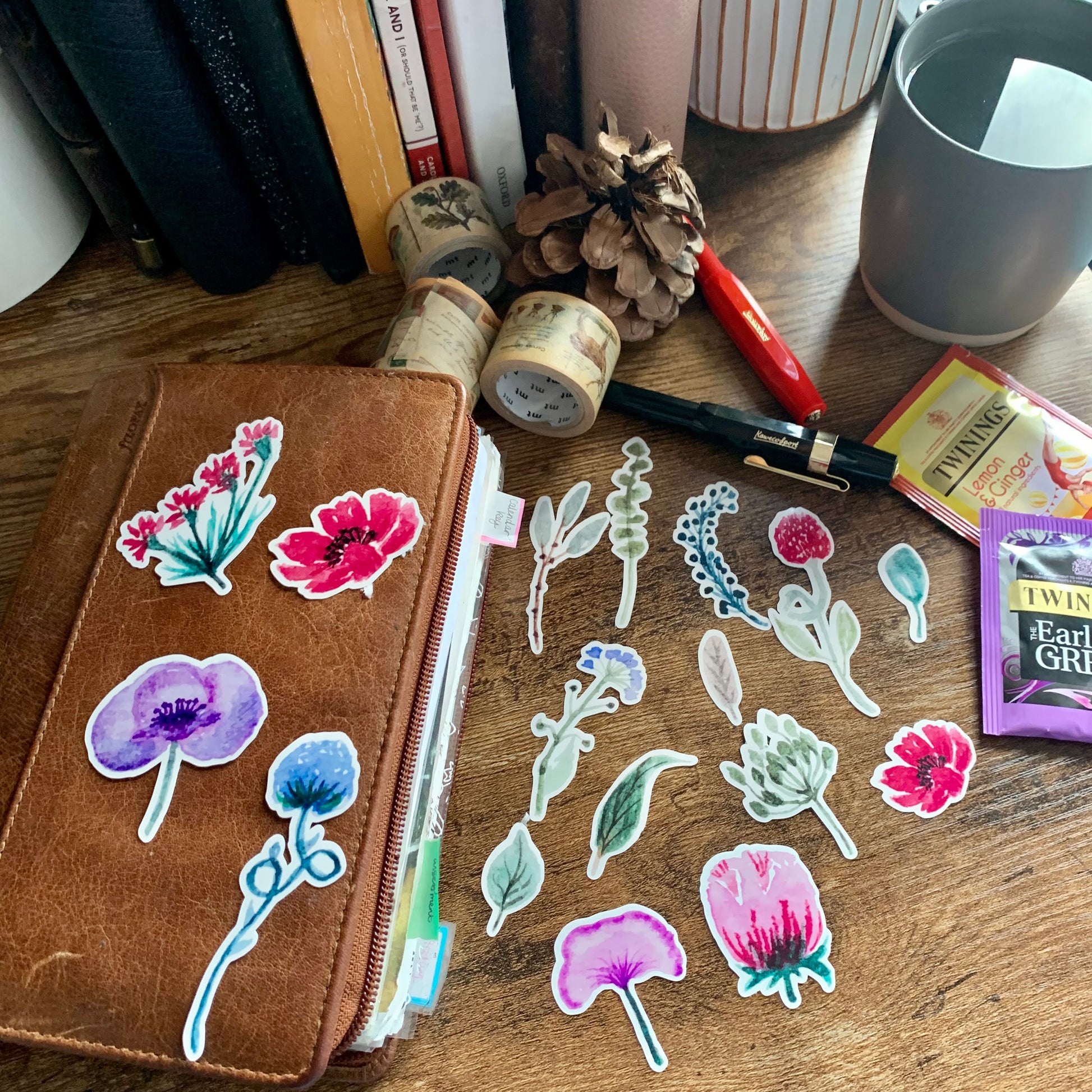 New gorgeous Watercolour floral elements sticker flakes printed on Premium Glossy Clear/transparent Sticker Paper great for decorating any planner/journal.