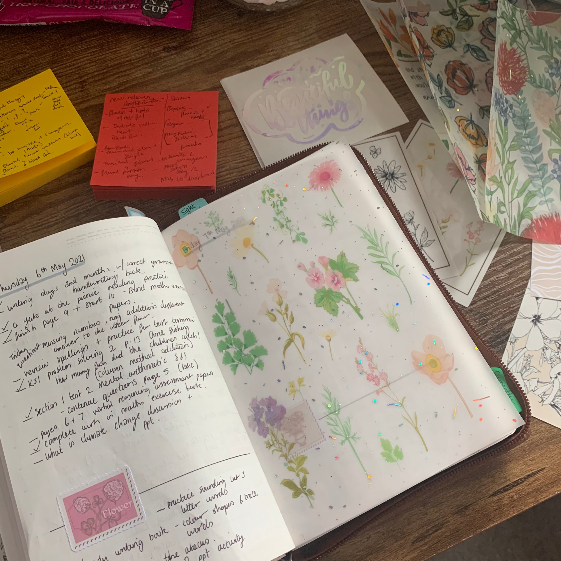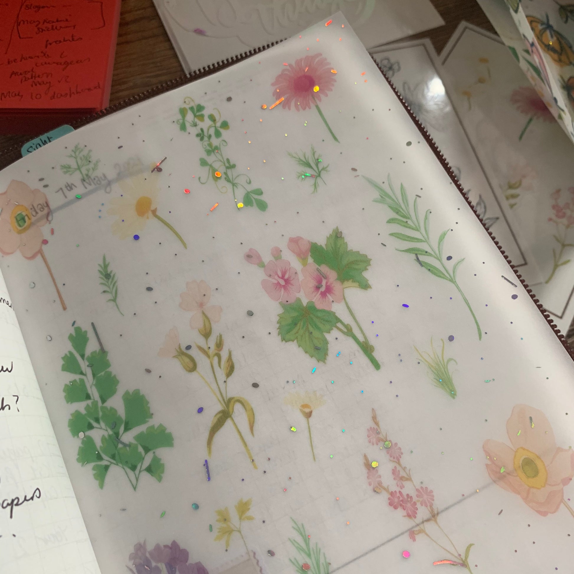 Printed Foiled Vellum Planner Dashboard- Pressed Flowers
