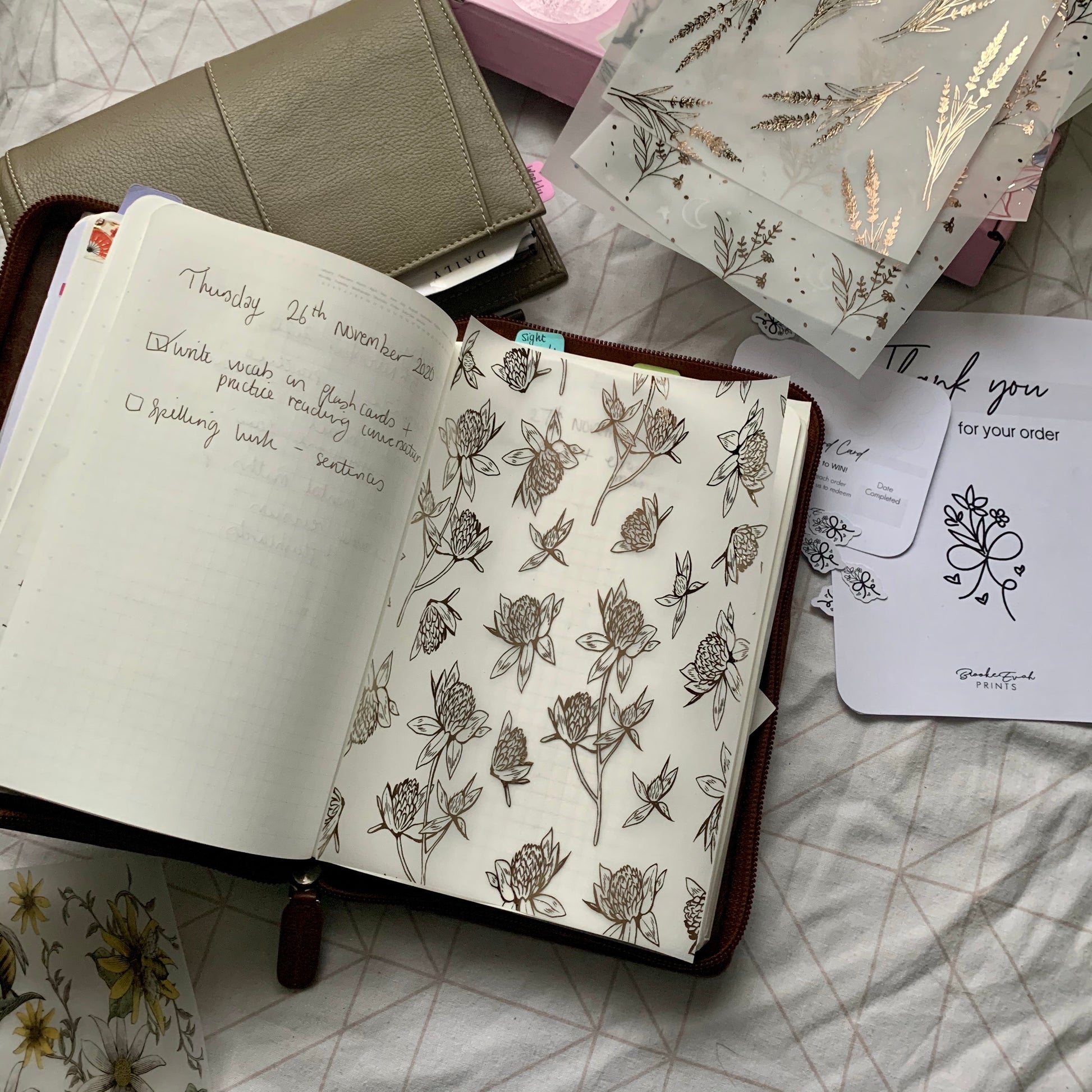 NEW Handmade Rose gold floral vellum dashboard with hand drawn artwork great for ring bound planners.