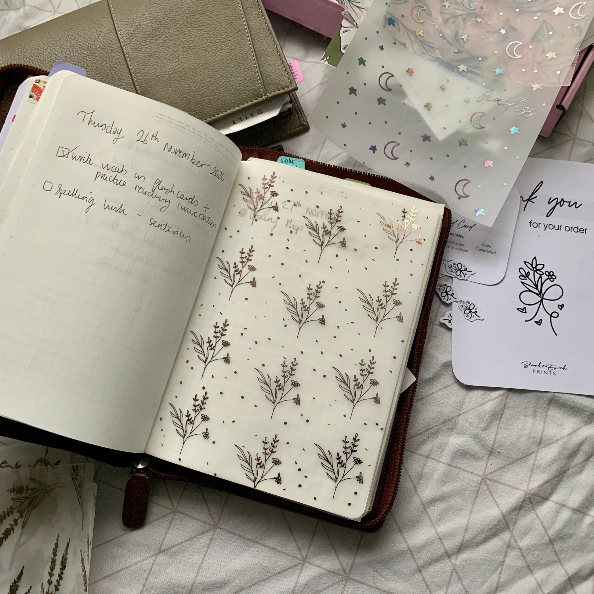 NEW Handmade Rose gold floral vellum dashboard with hand drawn artwork great for ring bound planners.