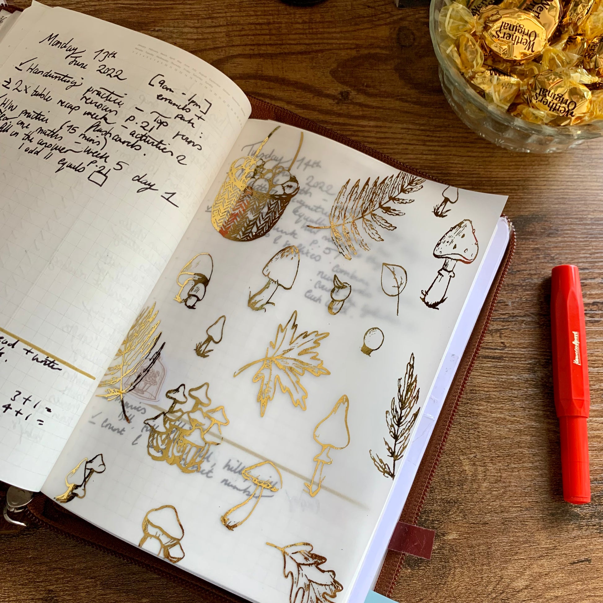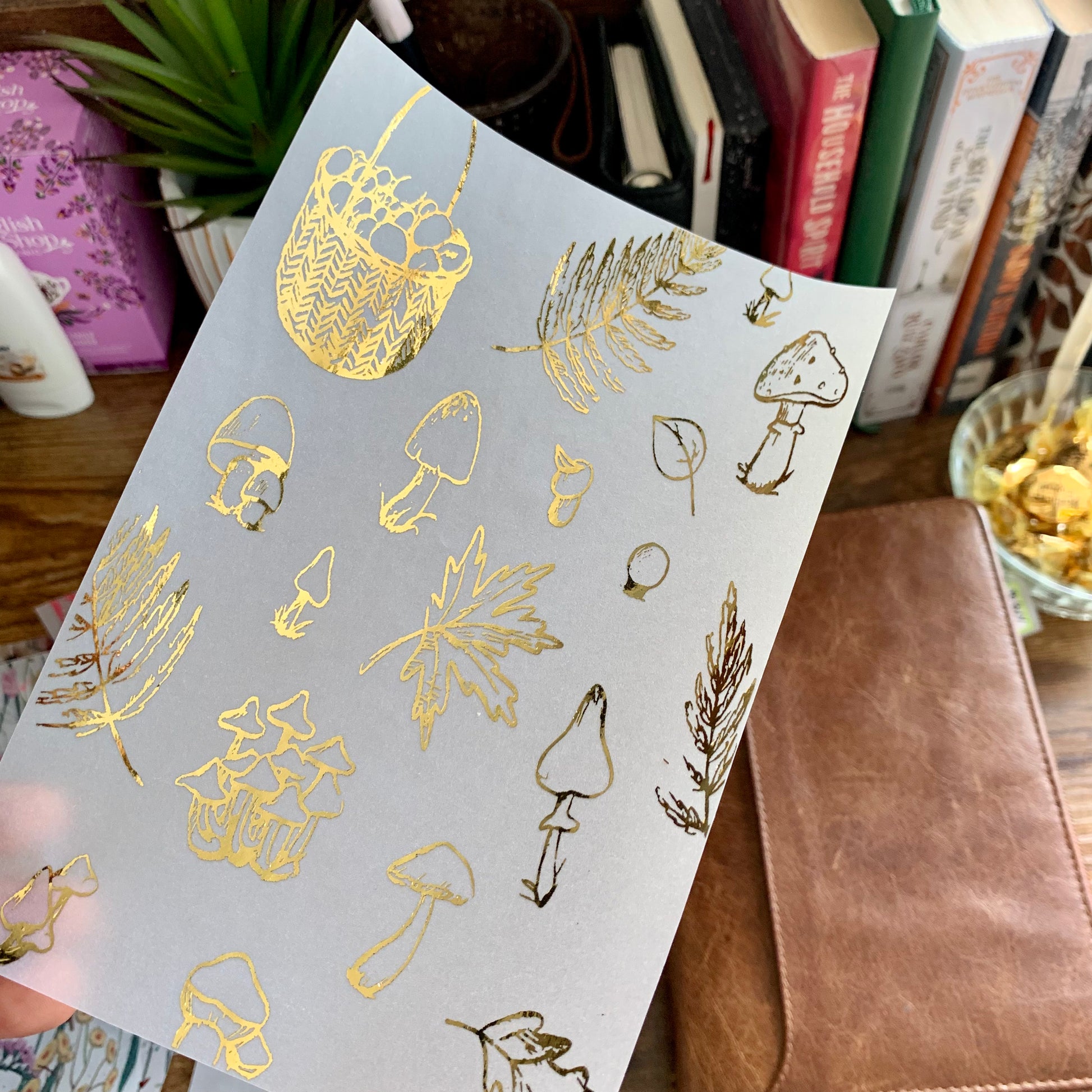 Gold Foiled Fall themed Leaves & Mushrooms • Vellum X Acetate Planner Dashboards - Autumn Feels