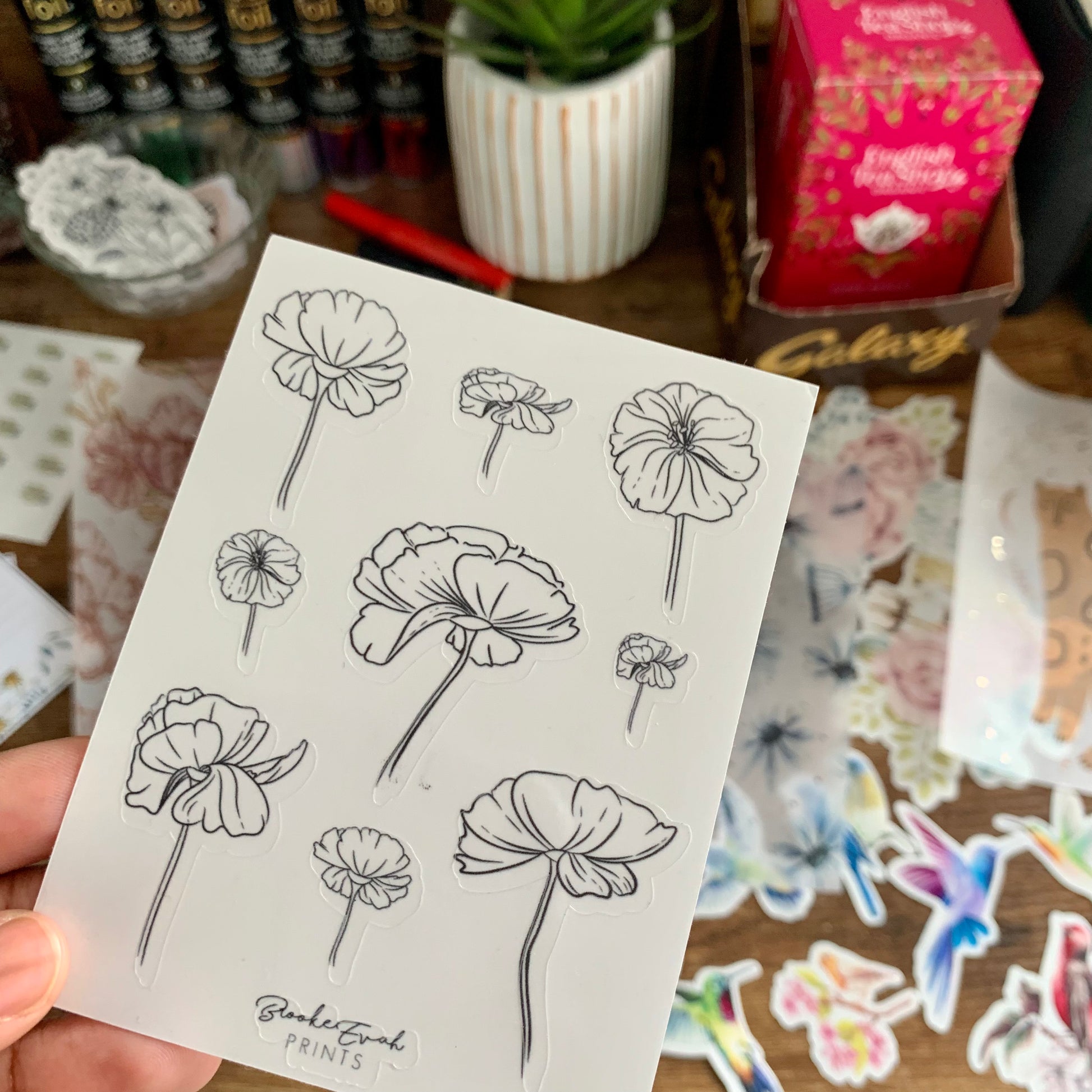 NEW minimal Floral stickers on Clear/ Transparent paper.