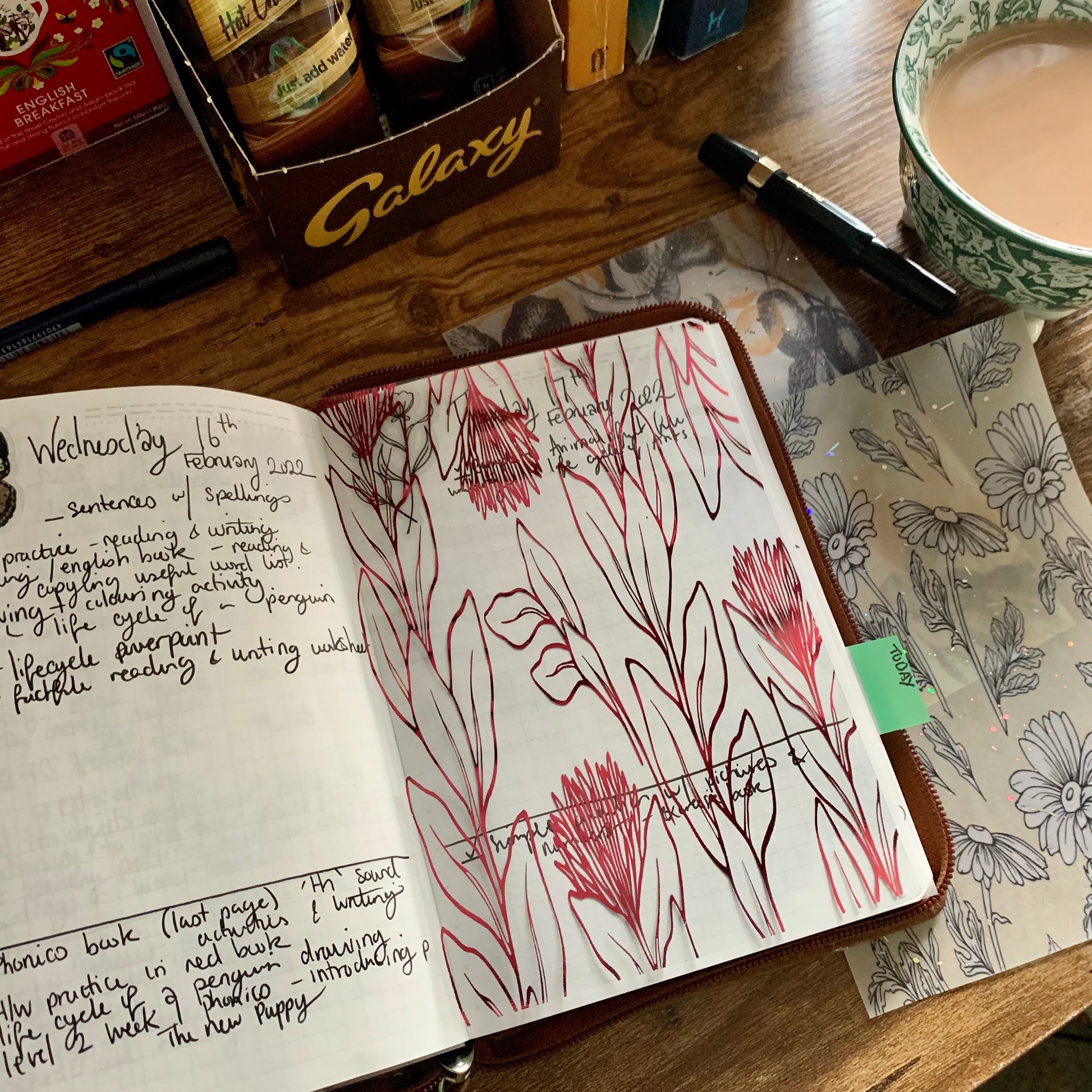 Pink Foiled Rhodiola Plant Vellum X Acetate Planner Dashboard- Spring Parlour Collection