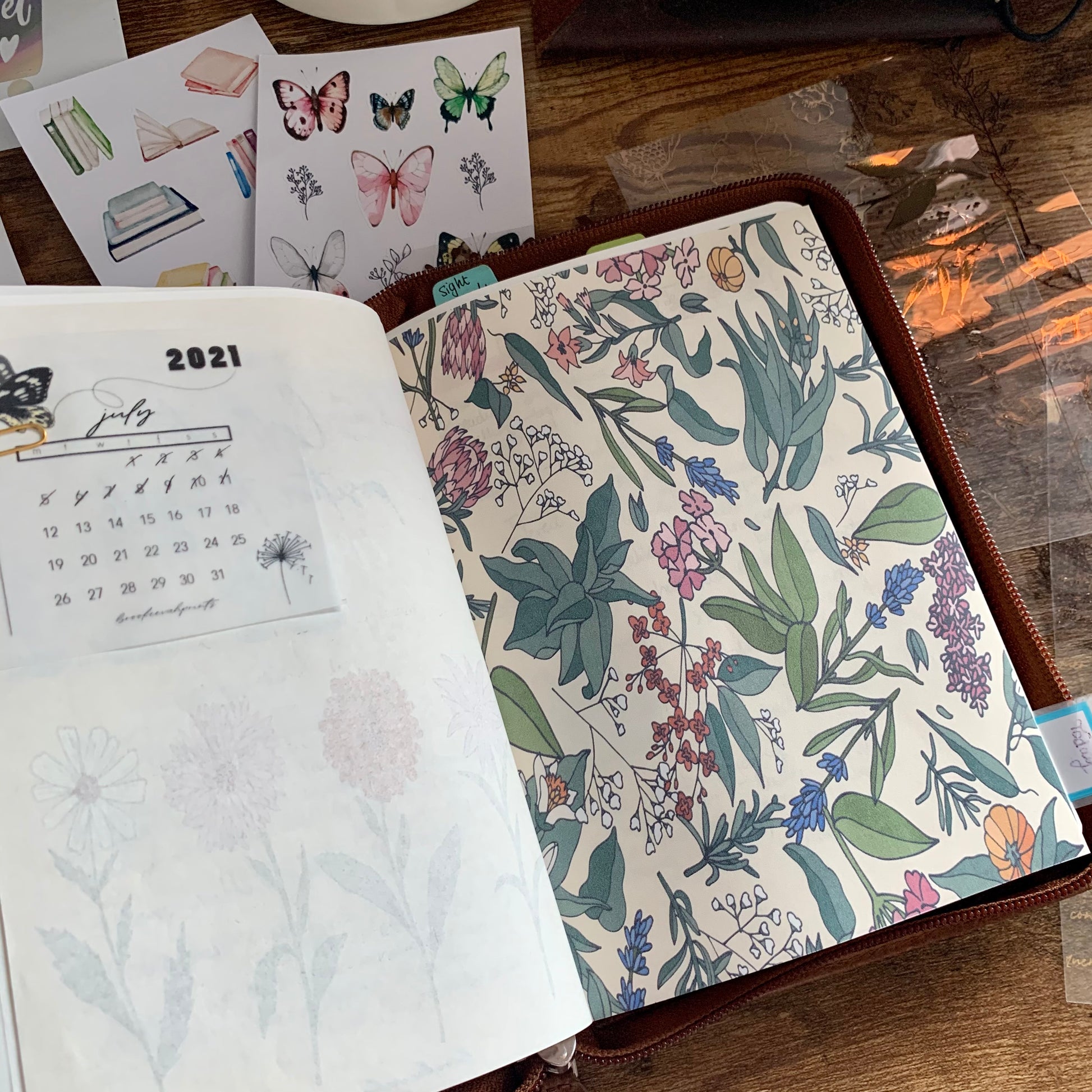 NEW Handmade Floral Background Dashboard with hand drawn artwork great for personalising bound planners or notebooks.