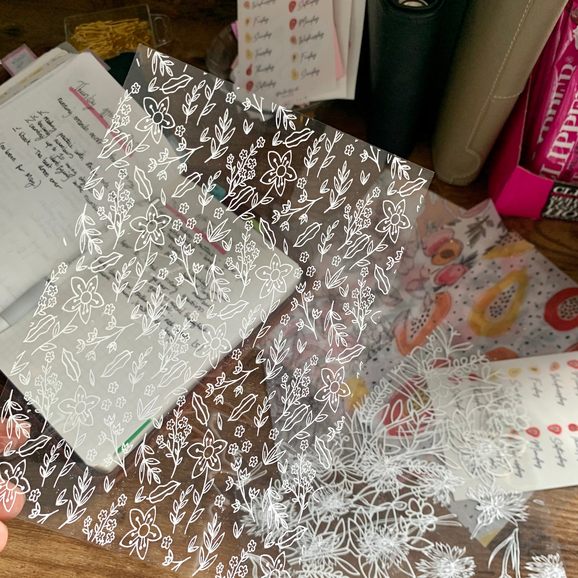 NEW Handmade Floral vellum/ acetate dashboards with hand drawn artwork great for decorating planners and journals.