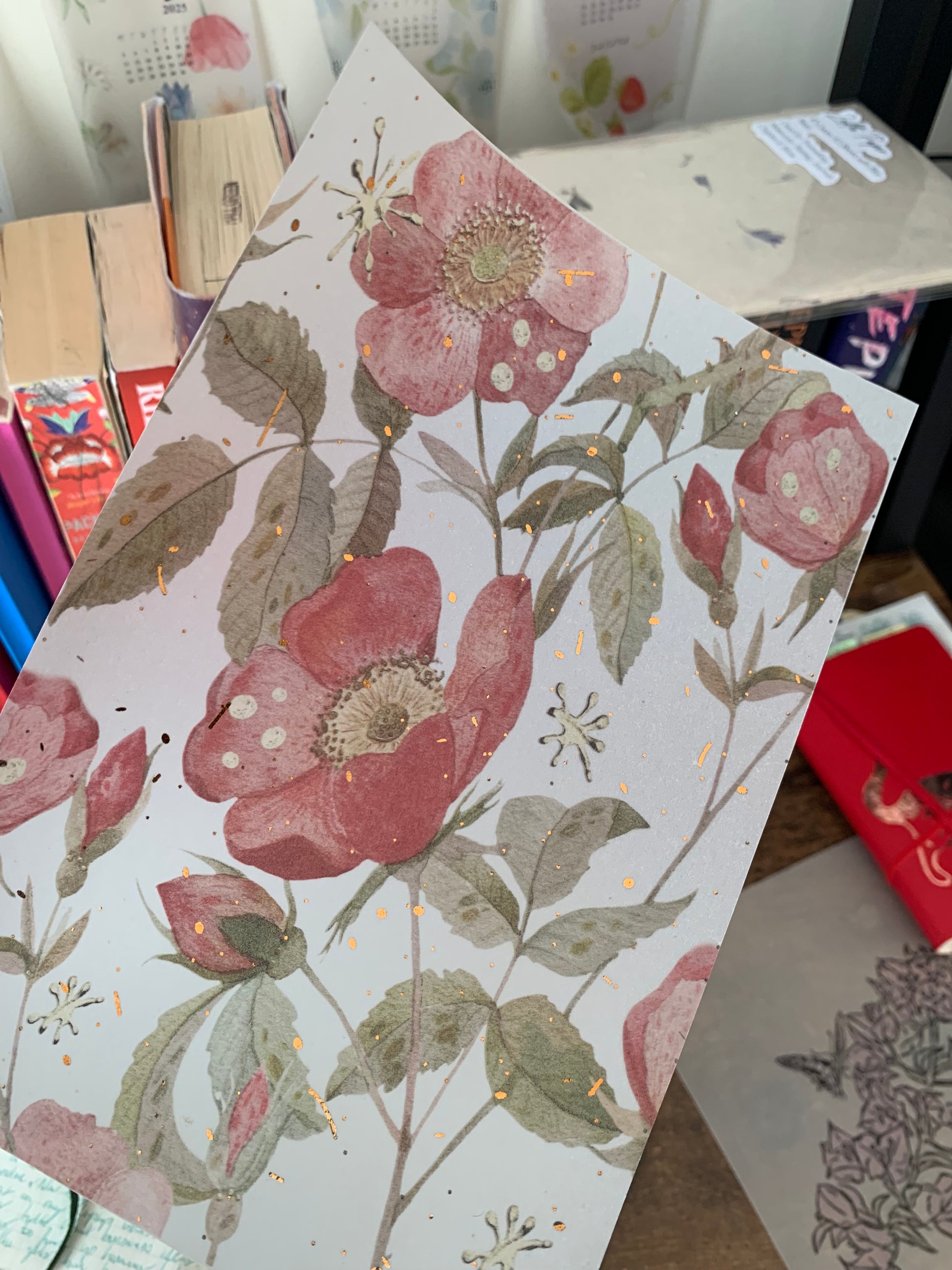 Elevate your projects to new heights of elegance with our stunning vellum featuring rich red florals enhanced with shimmering gold foil details.