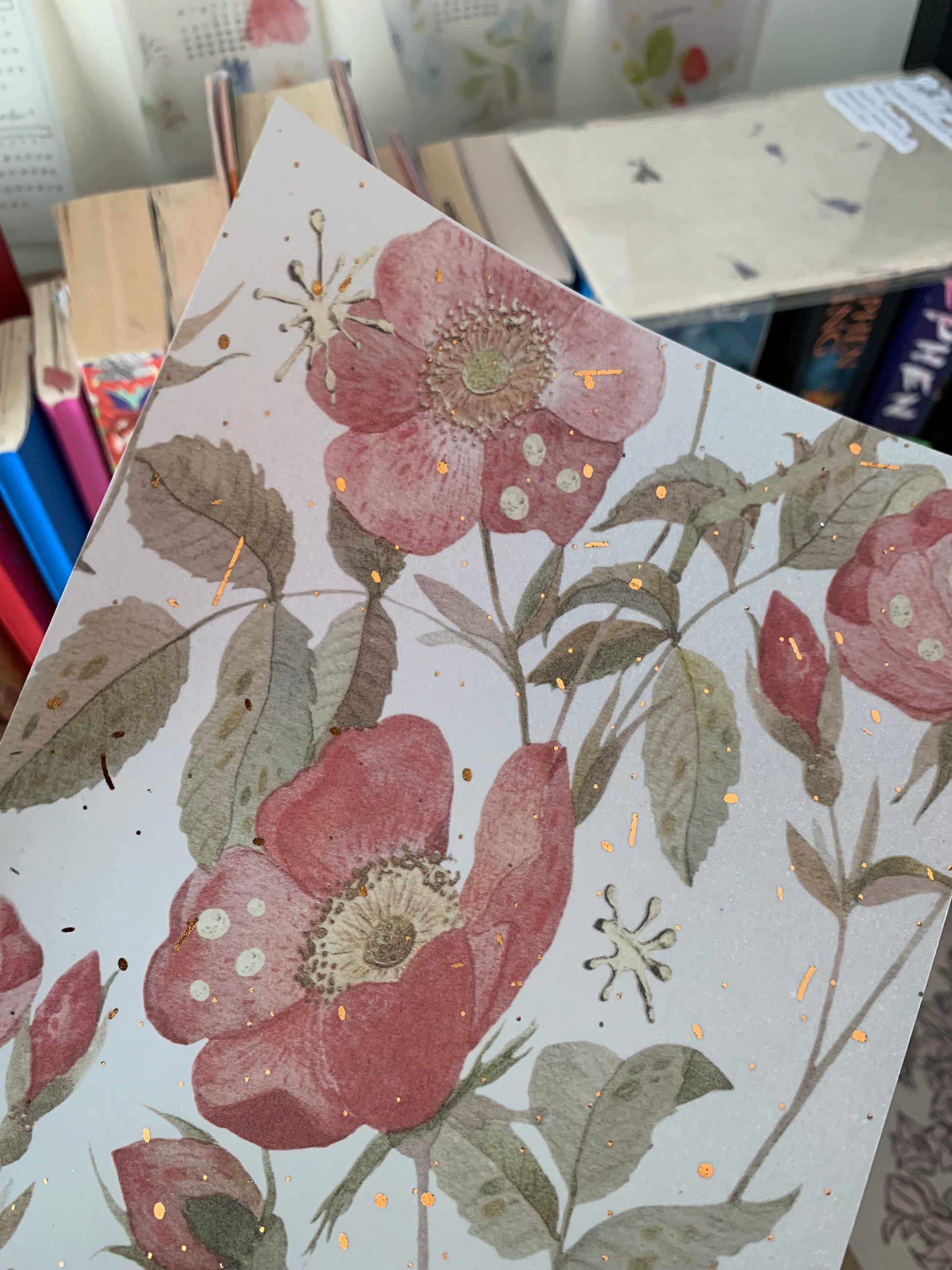 Red Floral Pattern with Copper Foil Accents for Notebooks Hand Drawn Vellum Planner Dashboard - Golden