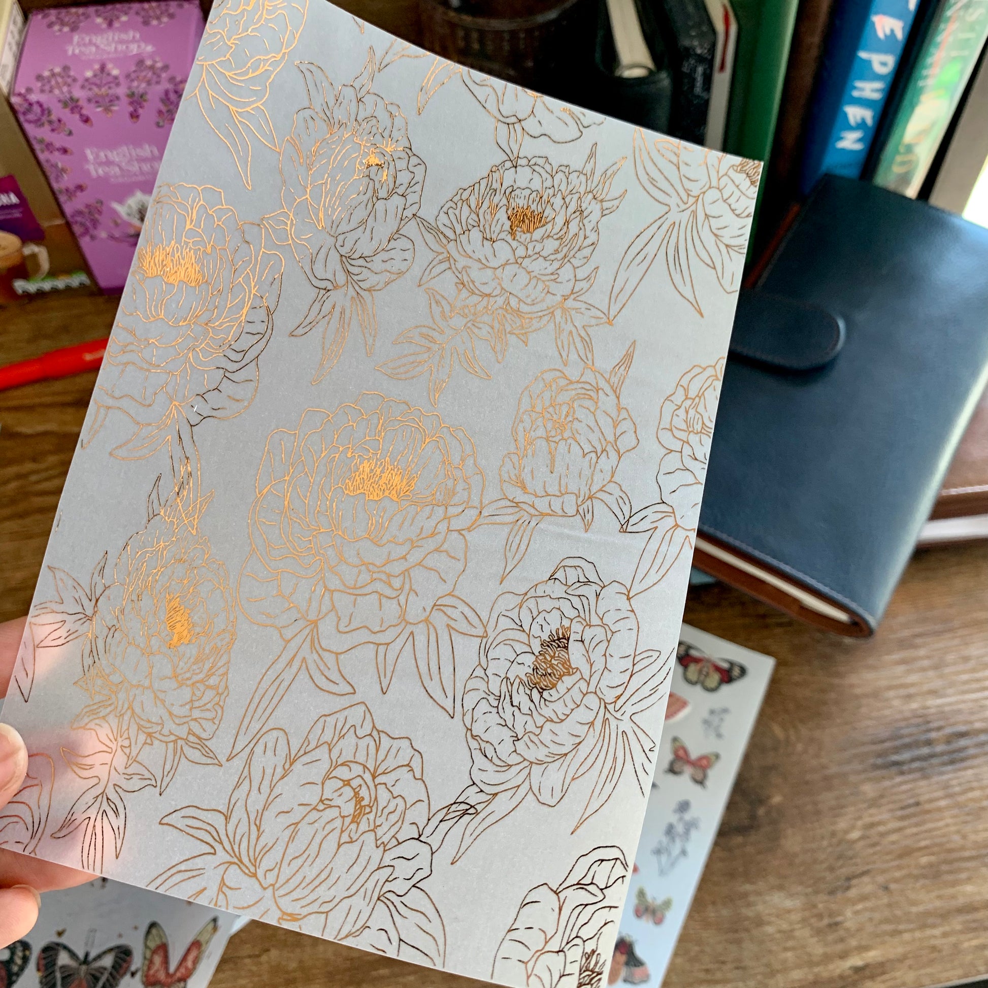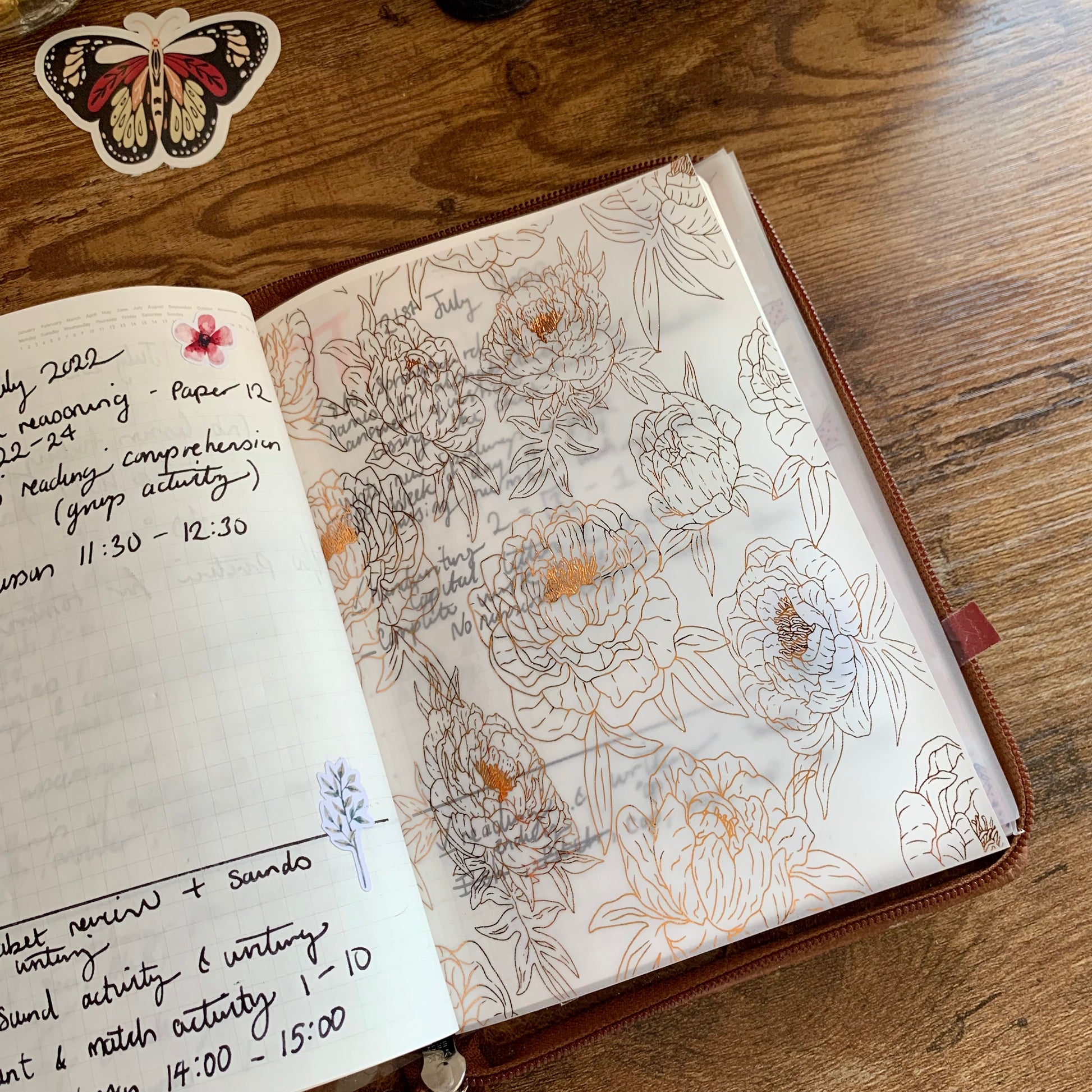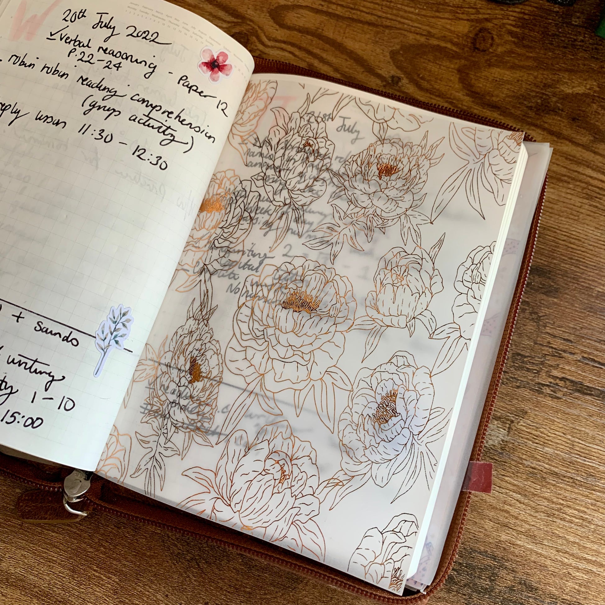 Copper Foiled Peony Floral Vellum X Acetate Planner Dashboard - Princess II