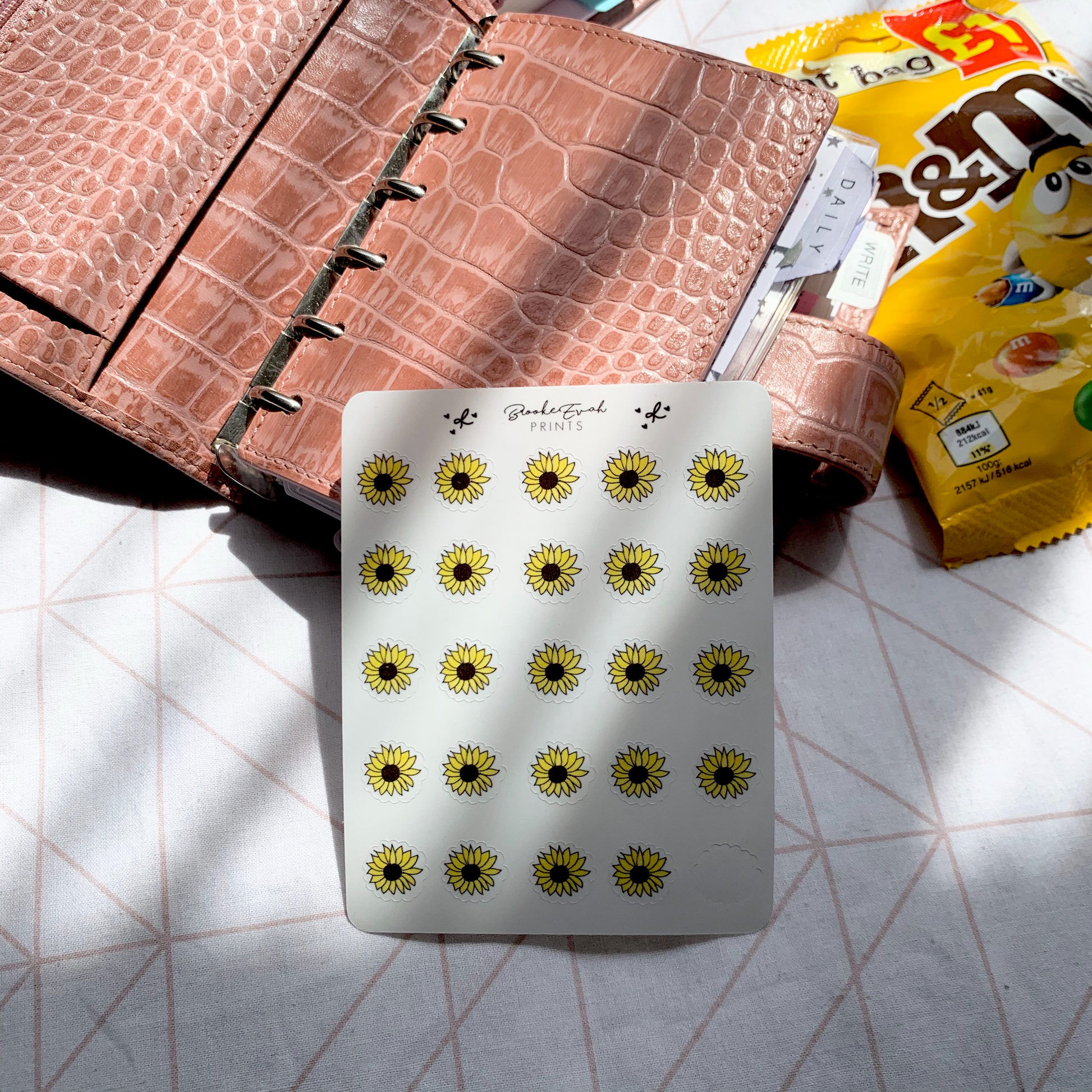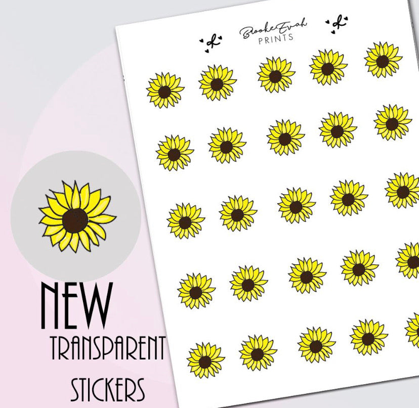 New Hand Drawn Sunflower Doodle stickers printed on Clear/ Transparent paper.