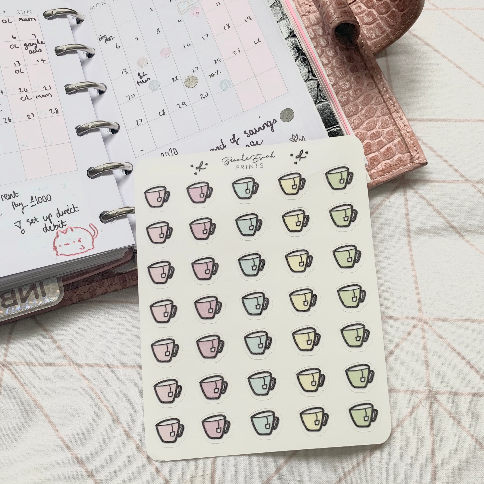 New Tea doodle stickers printed on Premium Glossy Transparent paper.