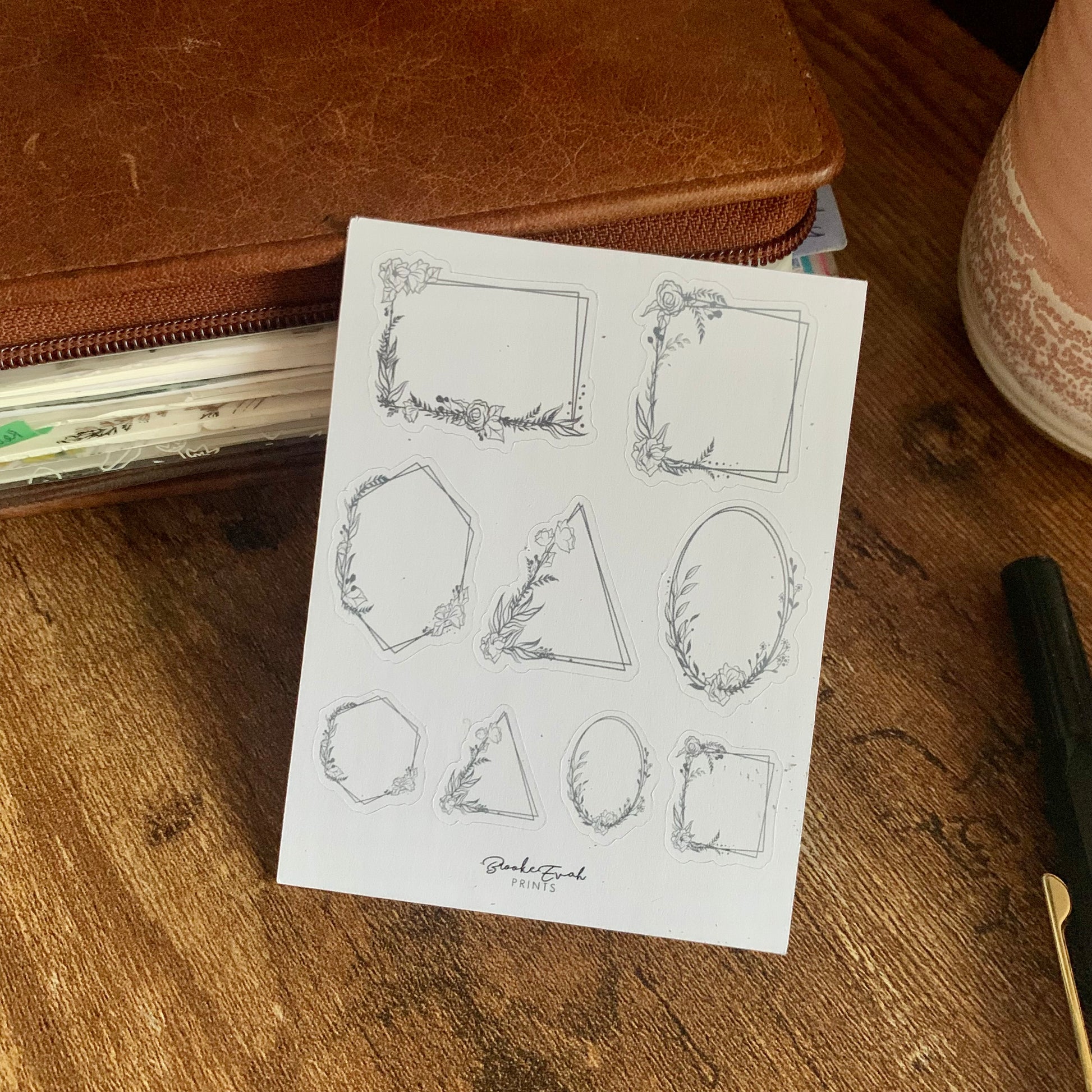 New Hand Drawn Vintage Floral Frame stickers printed on Premium Matte Sticker Paper. These pretty stikers are repositionable and are great for decorating planners and bullet journals.