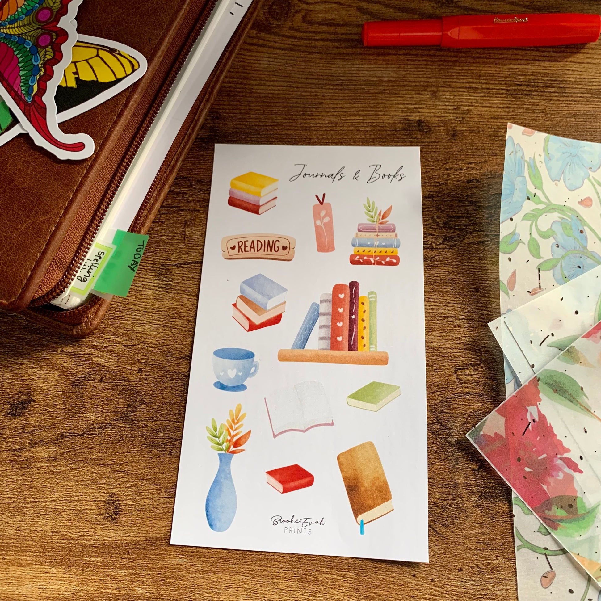 Watercolour Hand drawn Book Stickers - Journals & Books