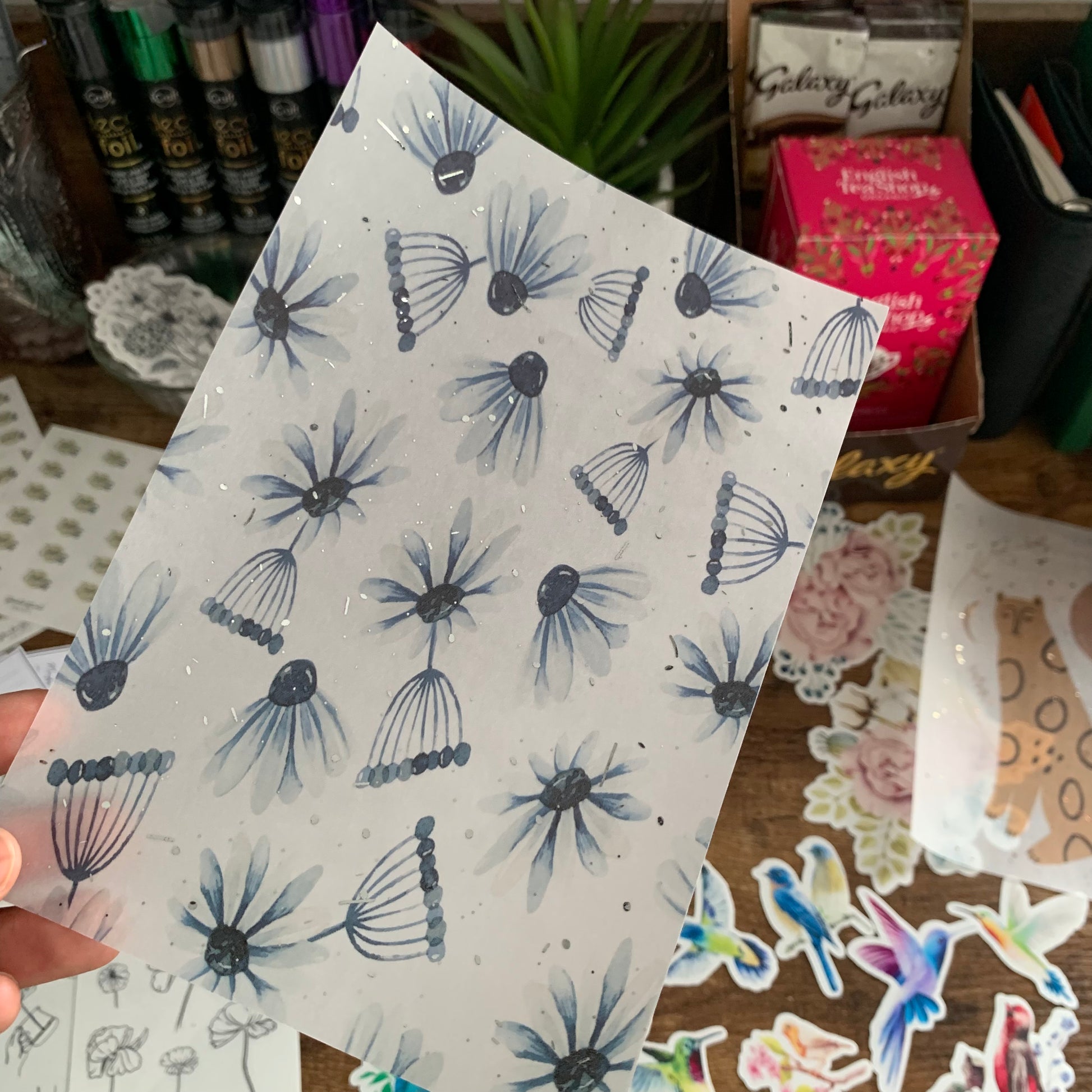 NEW Handmade Blue Daisy vellum dashboards with hand drawn artwork great for decorating planners and journals.