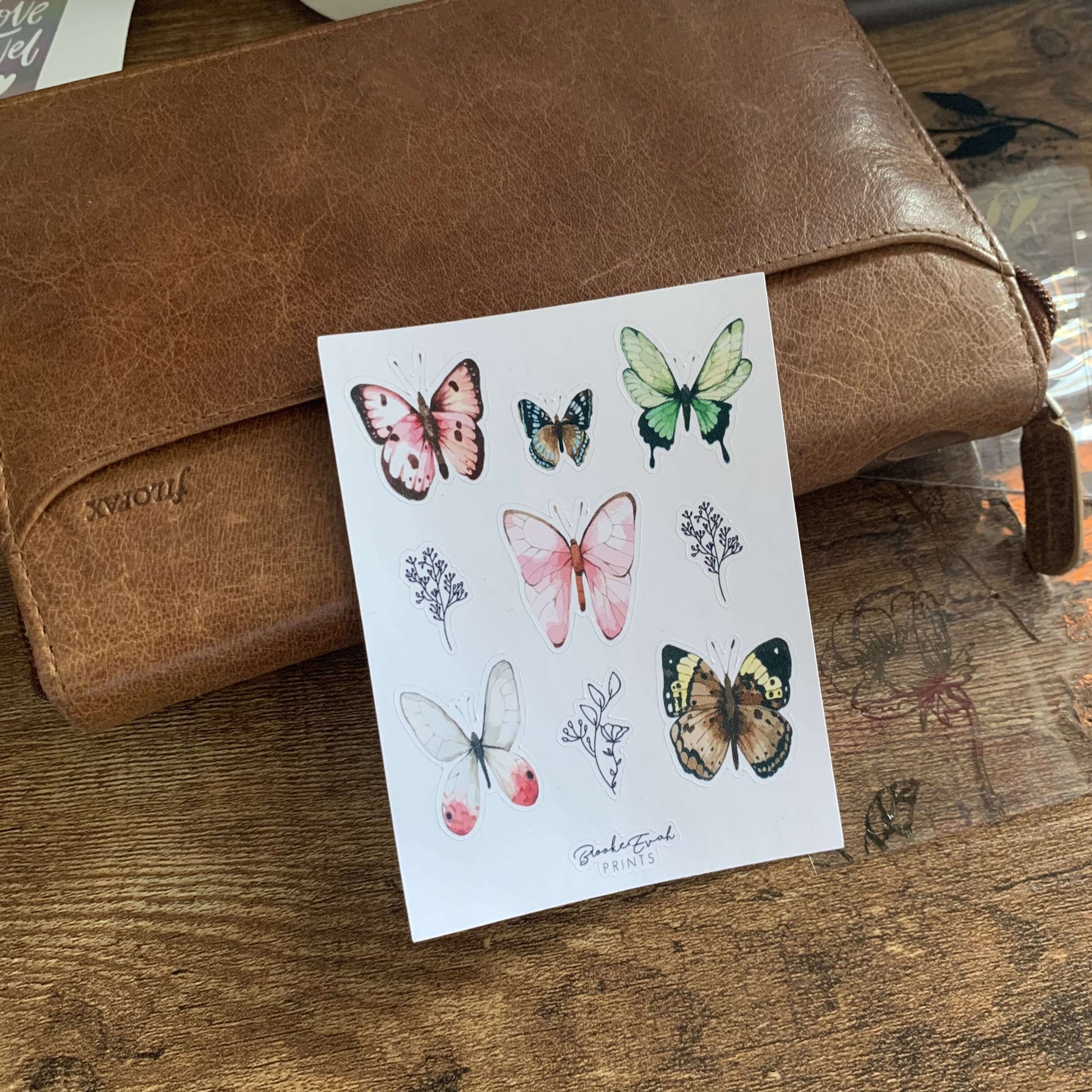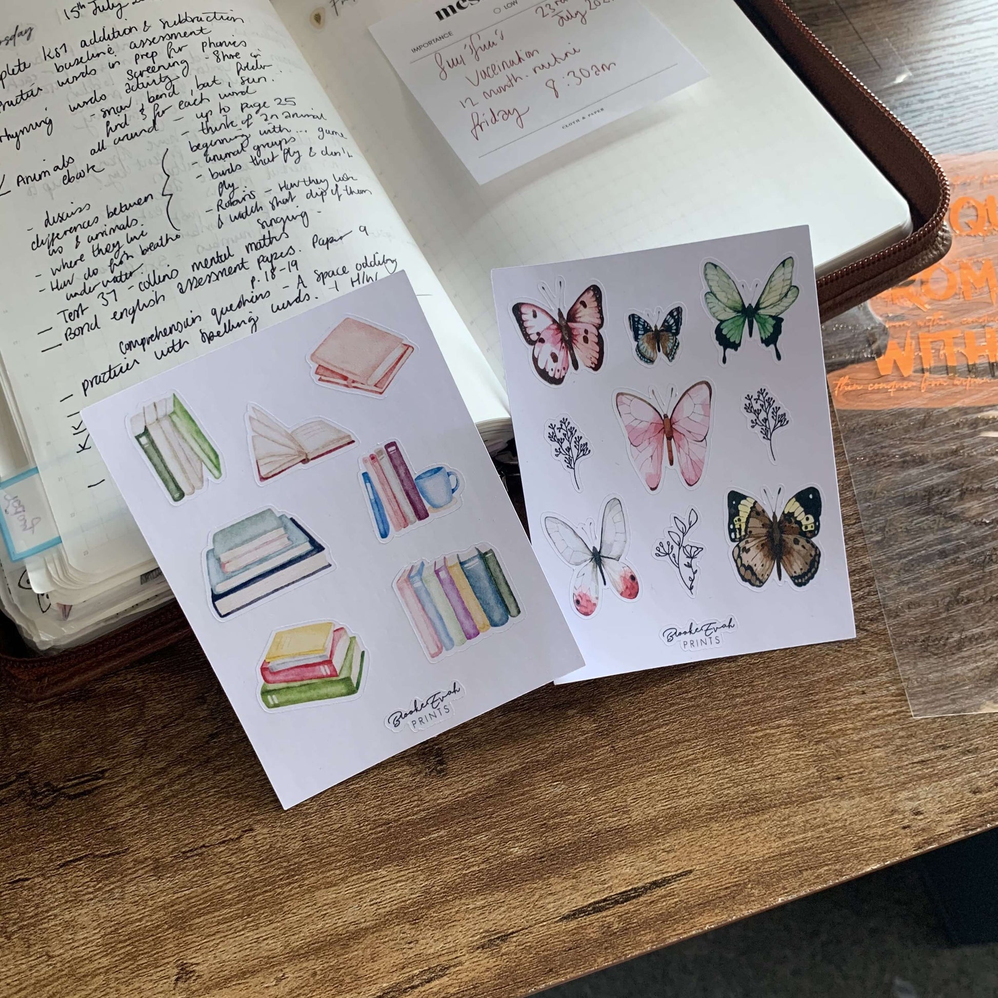 New Hand Drawn Water colour Butterfly & Book illustrated stickers printed on Premium Transparent Matte Sticker Paper. These pretty stikers are repositionable and are great for decorating planners and bullet journals.