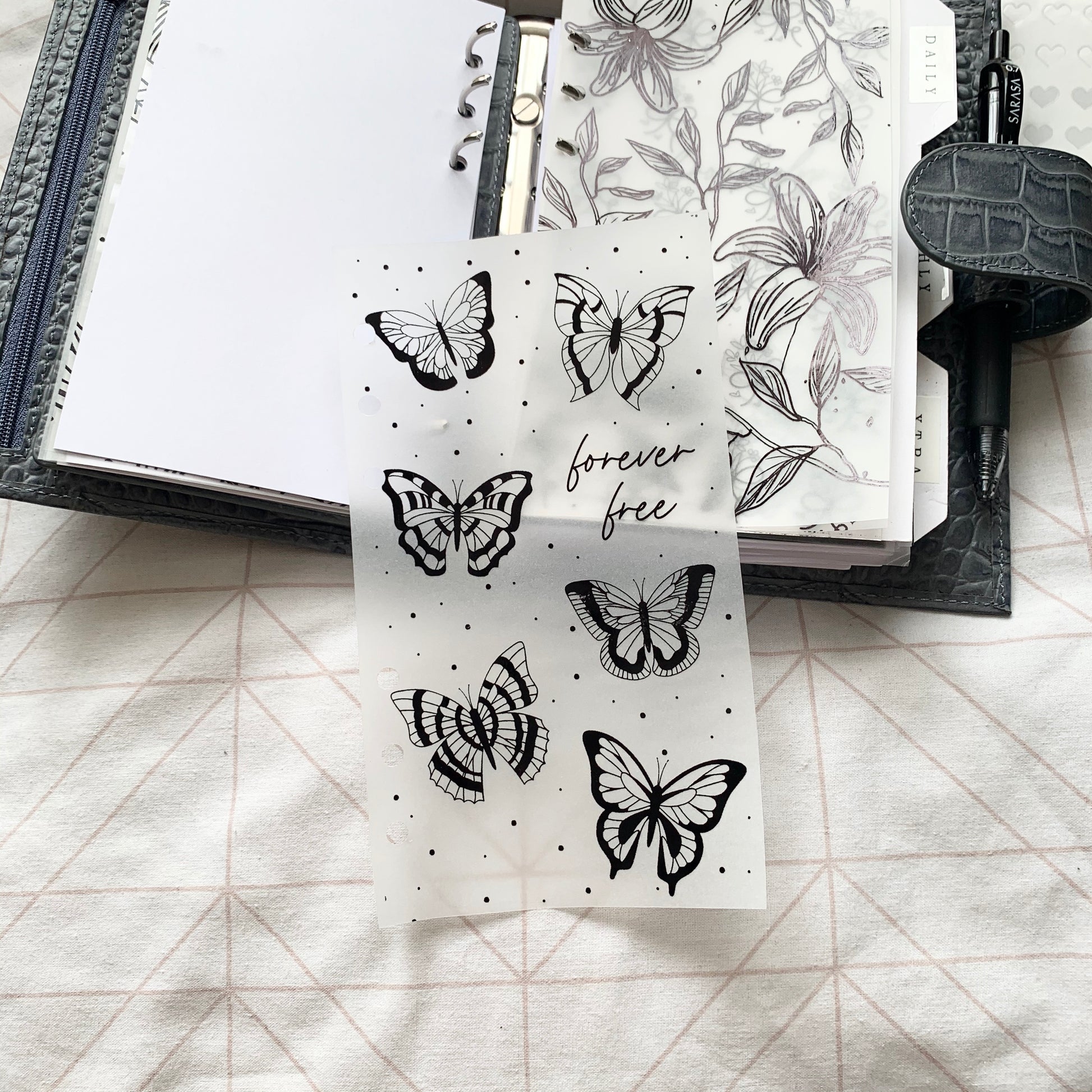 Printed Vellum X Acetate Planner Dashboard- Forever Free Butterflies