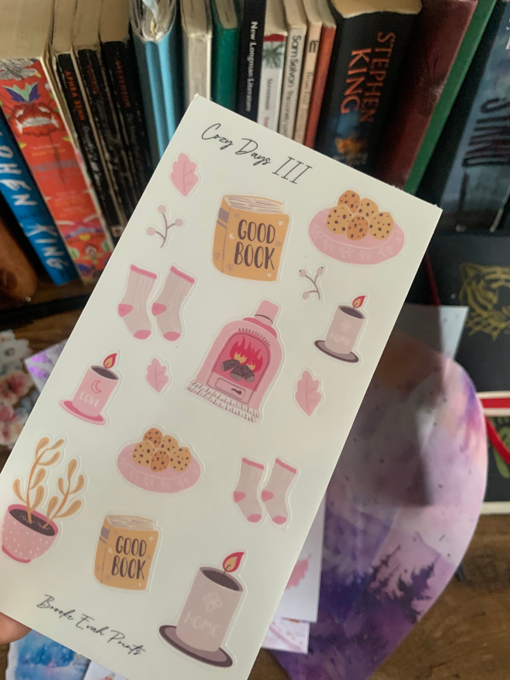 Cozy Days III Sticker l- Clear Winter Stickers - Pink doodle Stickers