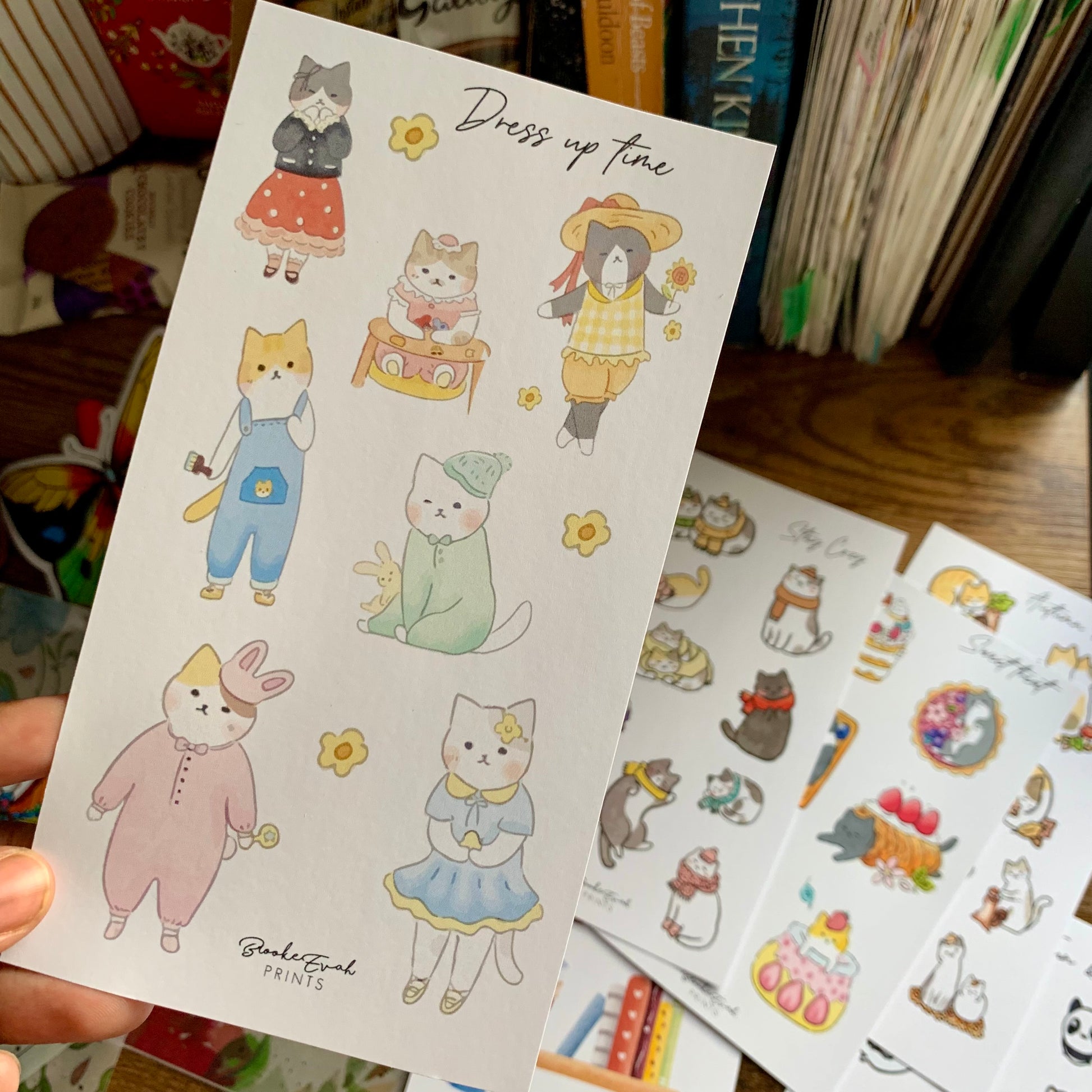 New Cute hand drawn Cat Stickers with dressing up in little outfits. These stickers are so adorable and perfect for adding some fun to your planner or journal.