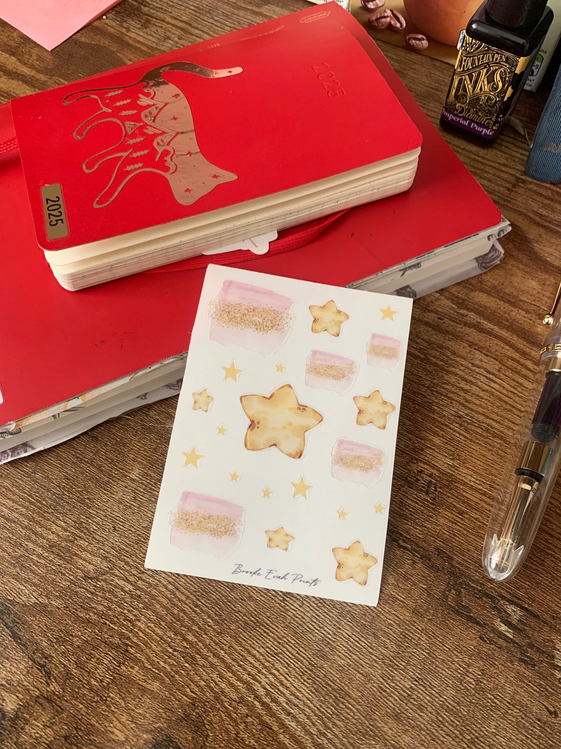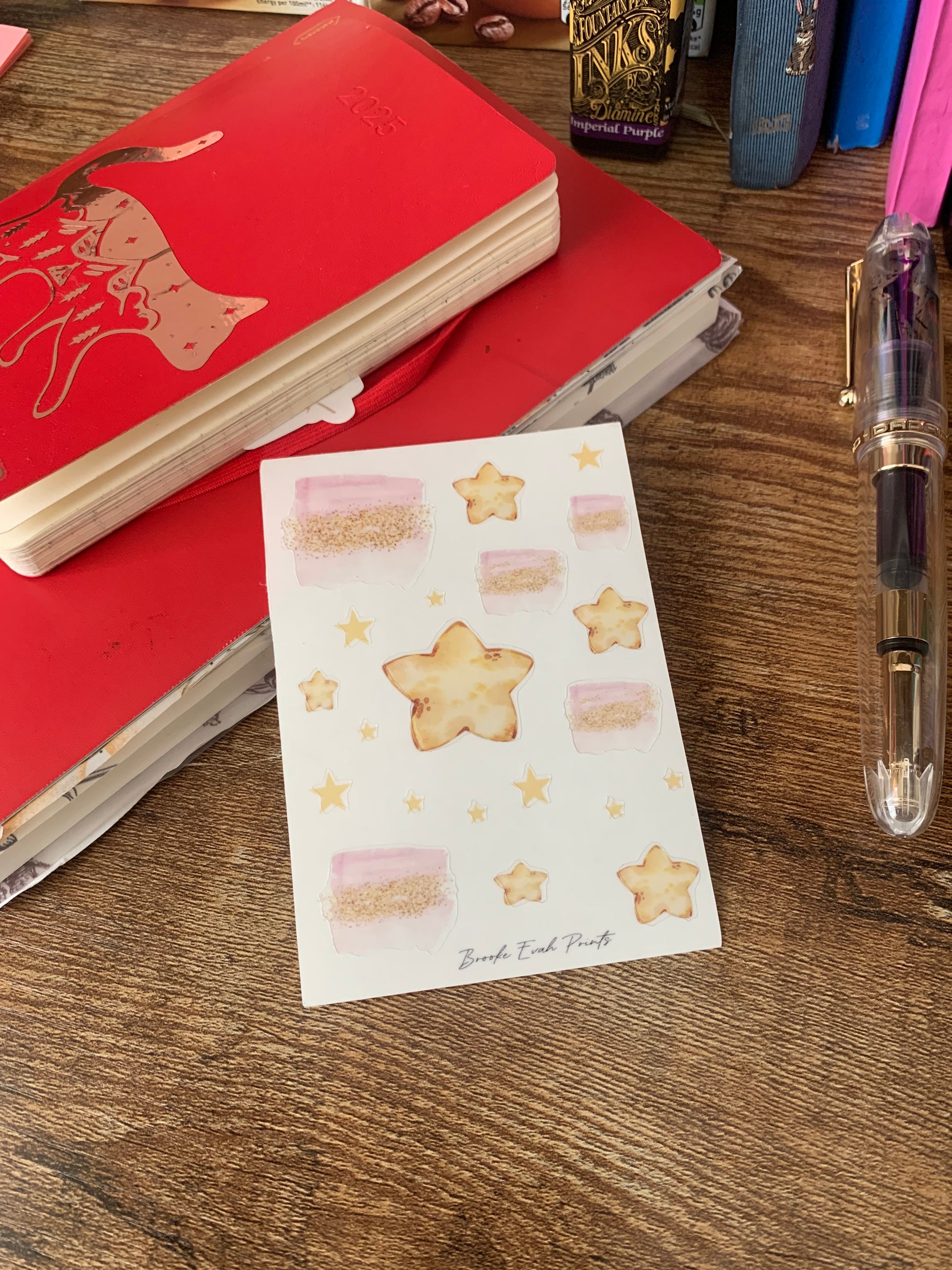 NEW Pink and Gold Star stickers on Clear/ Transparent paper.