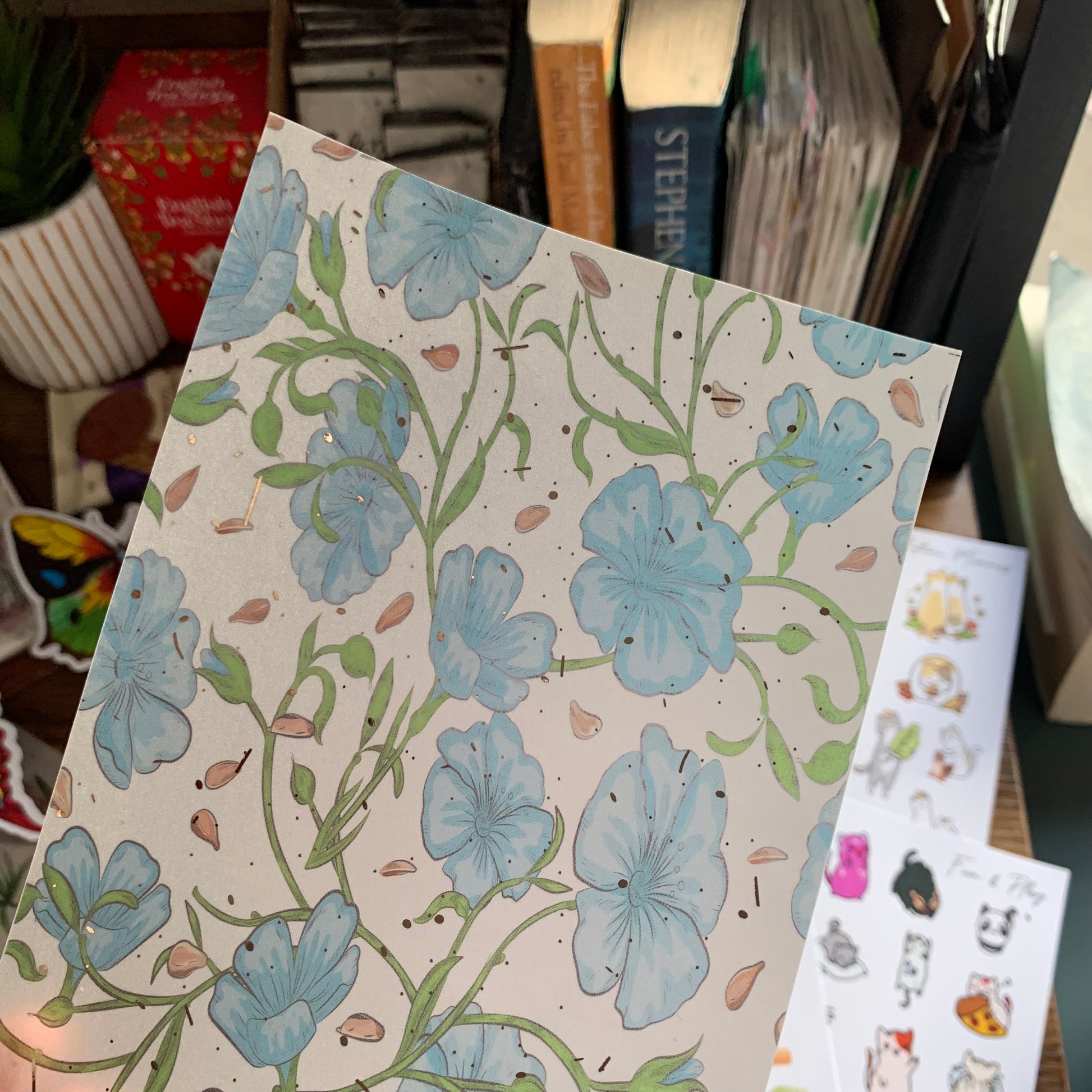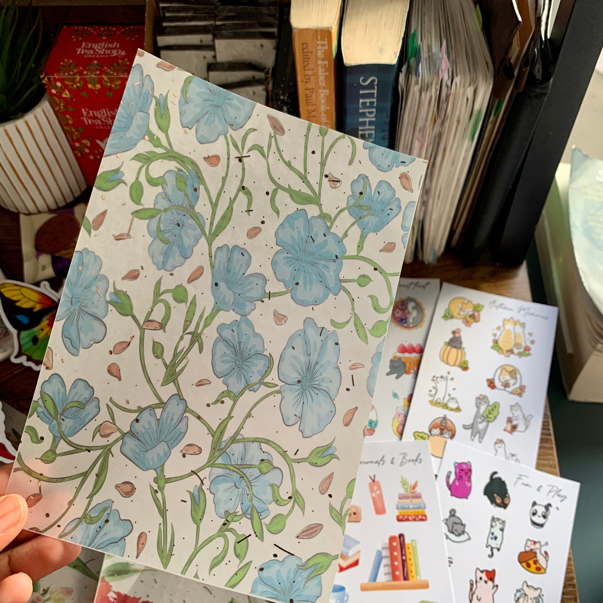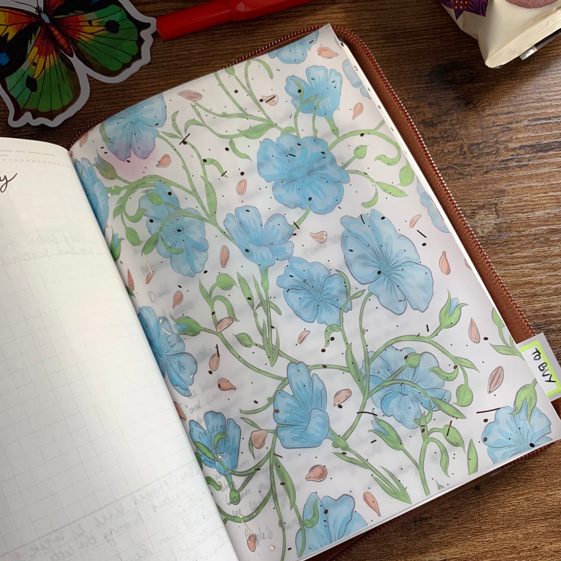 Foiled Rose Gold Vellum Blue Floral Flax Seed Plant Planner Dashboard - Anna