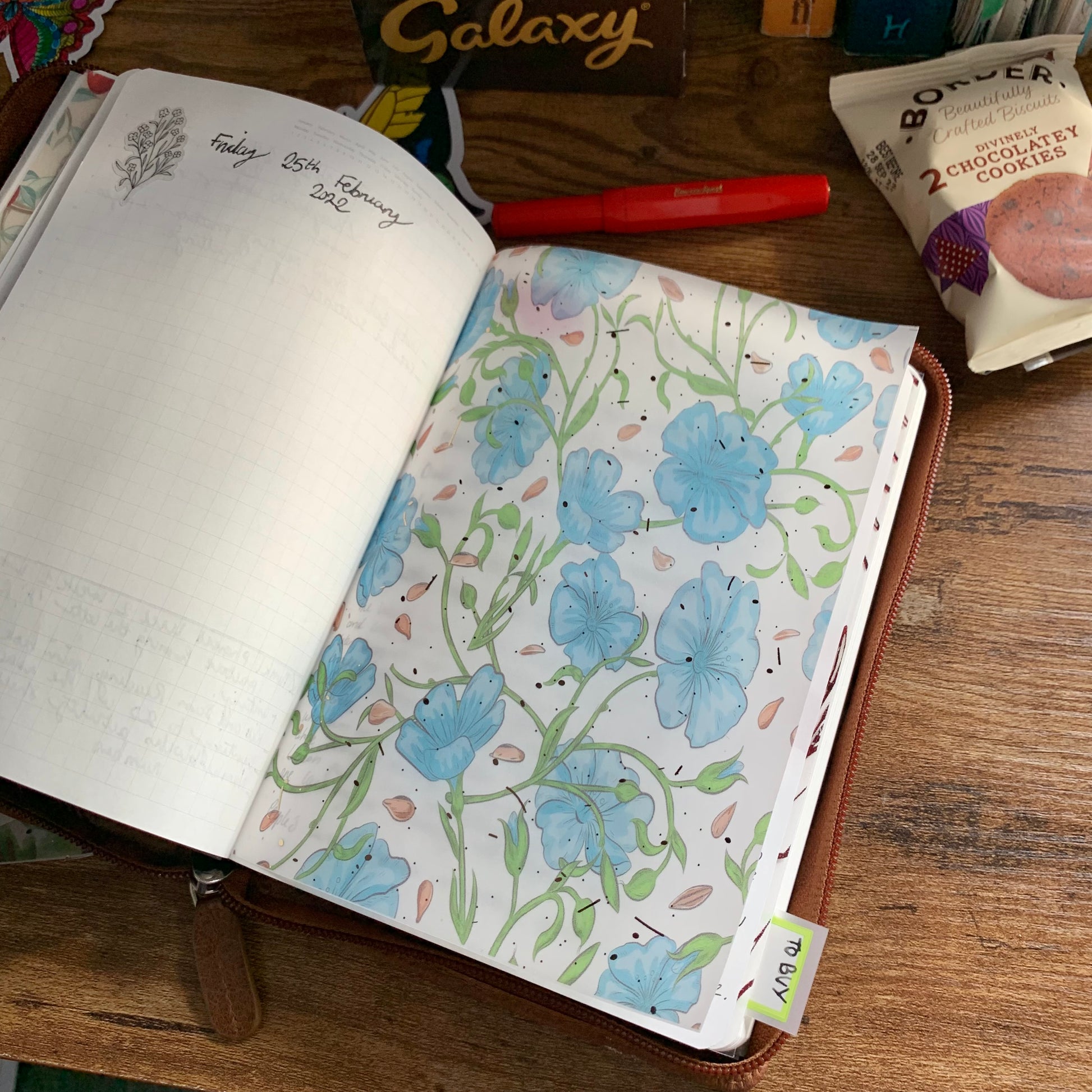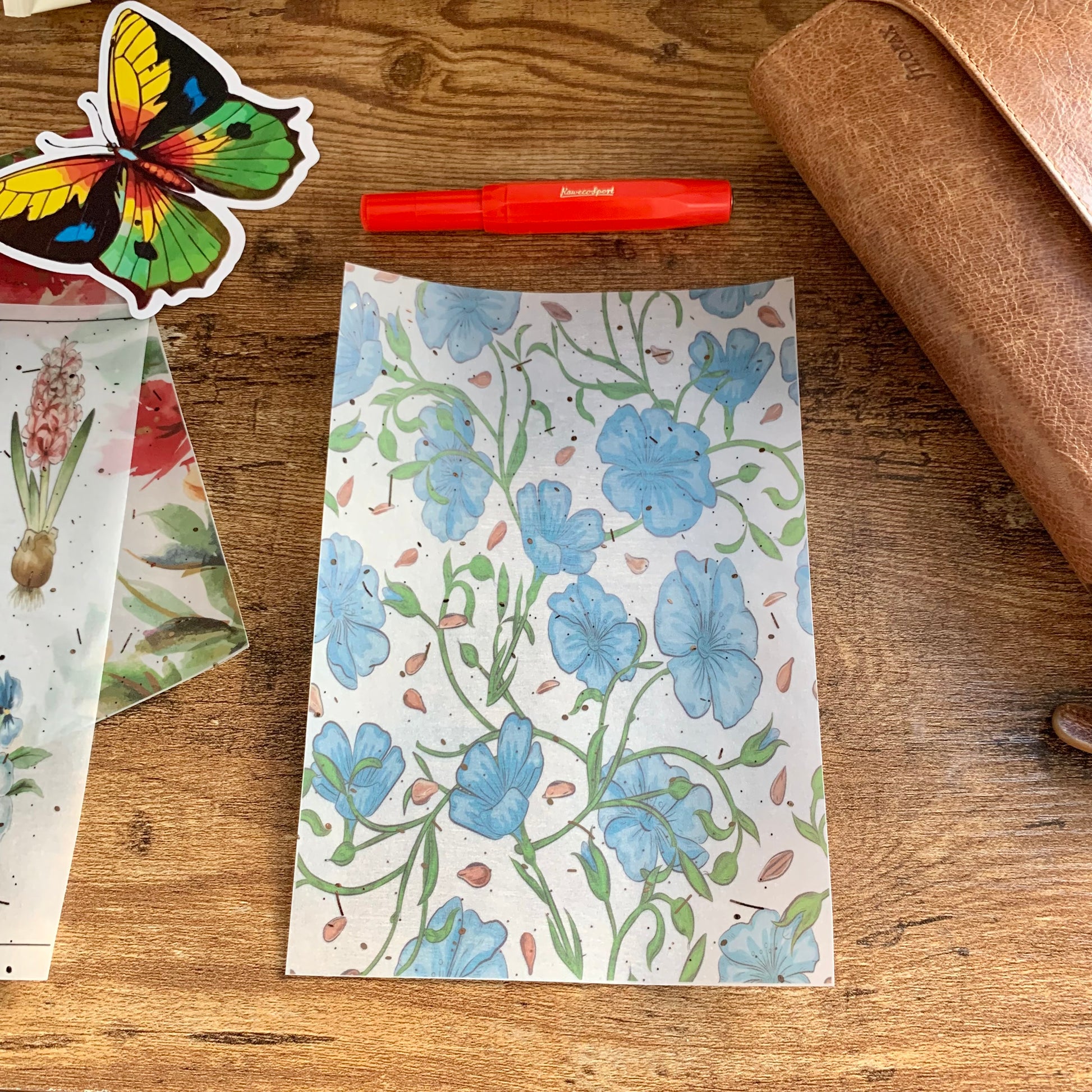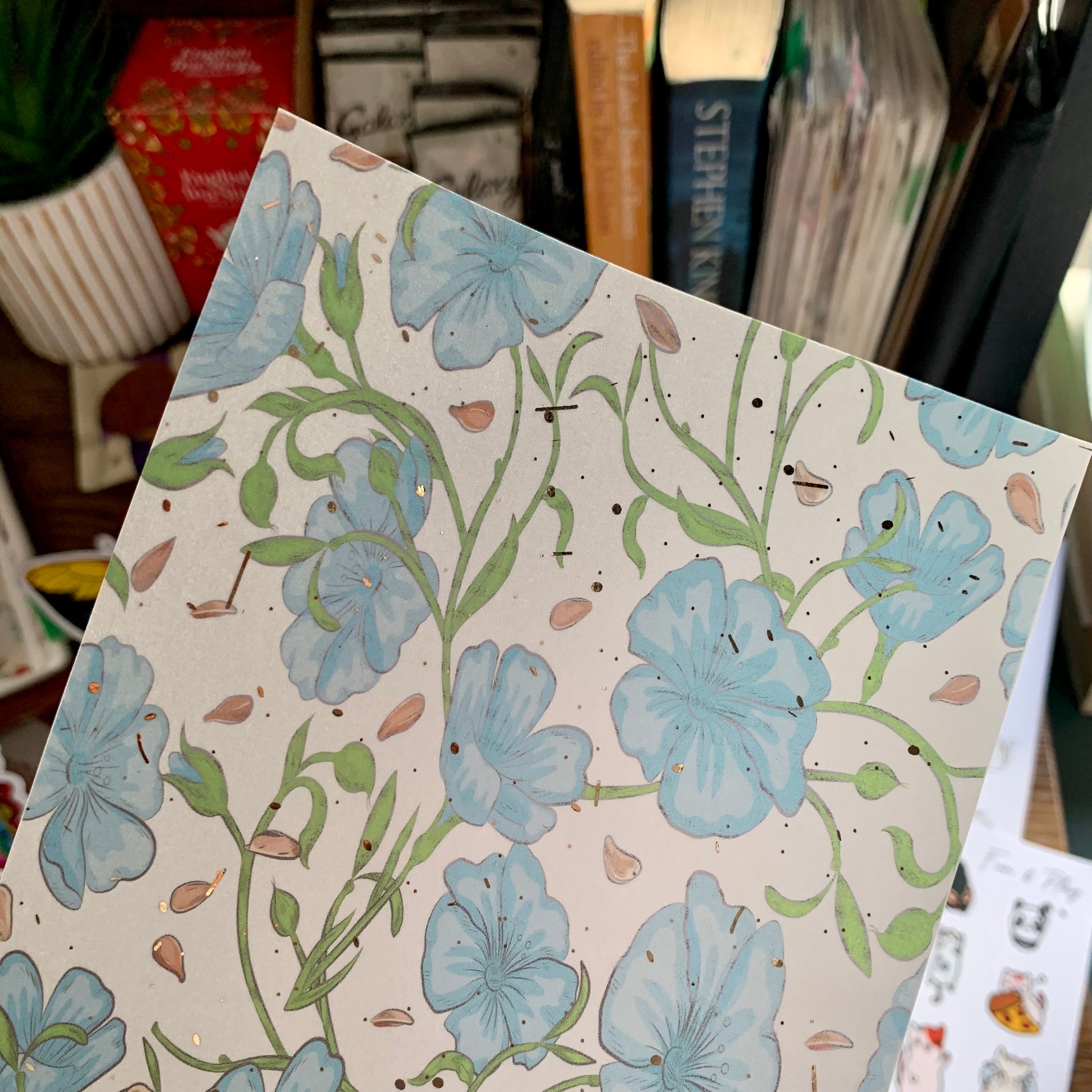 Foiled Rose Gold Vellum Blue Floral Flax Seed Plant Planner Dashboard - Anna