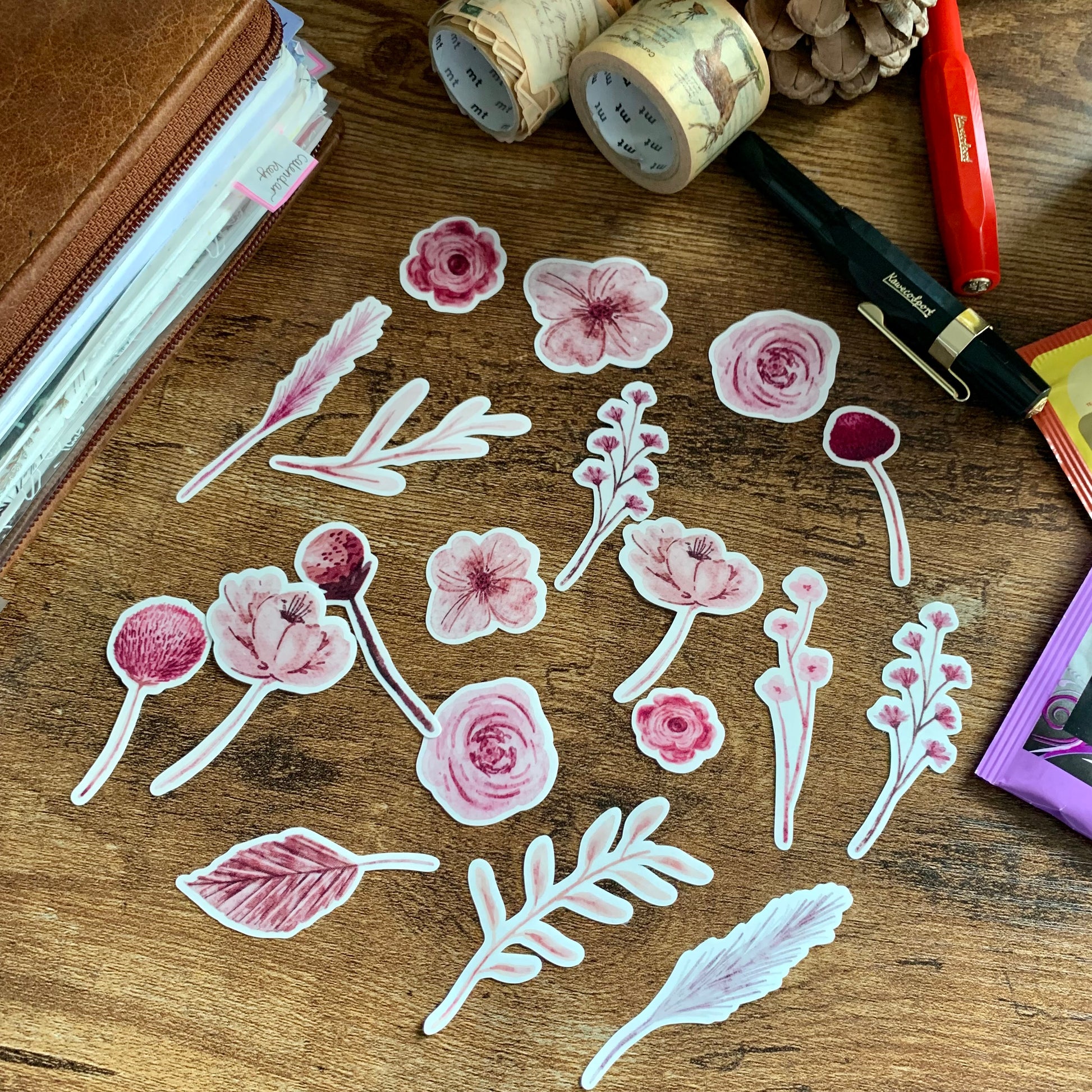New gorgeous Watercolour floral elements sticker flakes printed on Premium Glossy Clear/transparent Sticker Paper great for decorating any planner/journal.