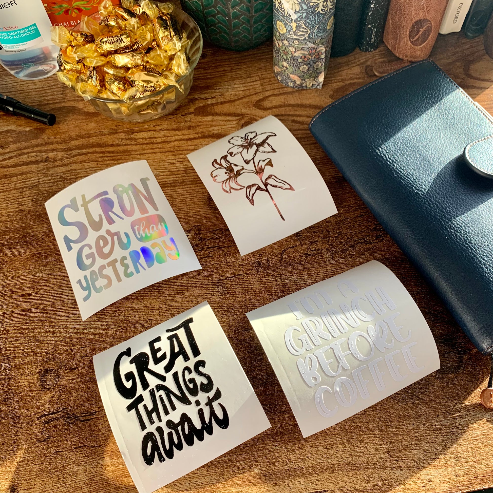 New Vinyl stickies great to decorate and personalise the front cover of your planner or journal notebook. They are waterproof so can also be used to decorate your laptop or tumblers!