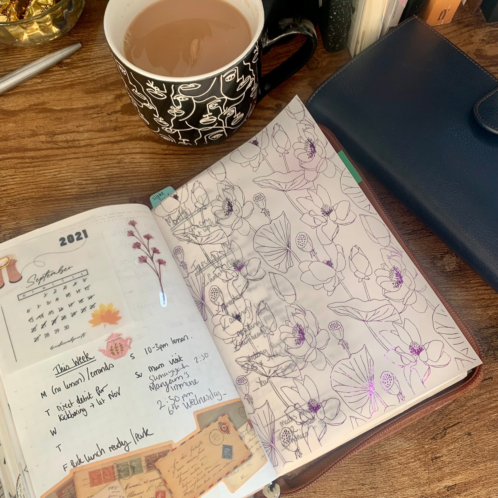 NEW Handmade foiled Lotus flower vellum/ acetate dashboards with hand drawn artwork great for decorating planners and journals.