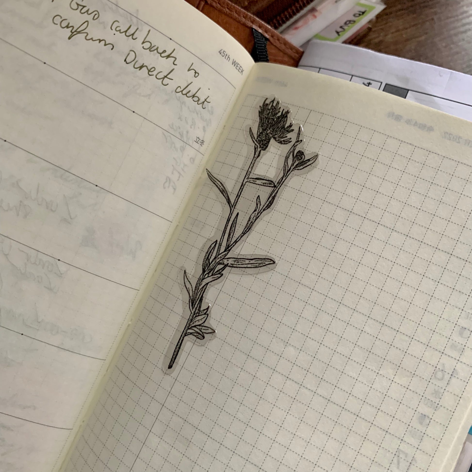 New gorgeous Hand drawn floral elements sticker flakes printed on Premium Glossy Clear/transparent Sticker Paper great for decorating any planner/journal.