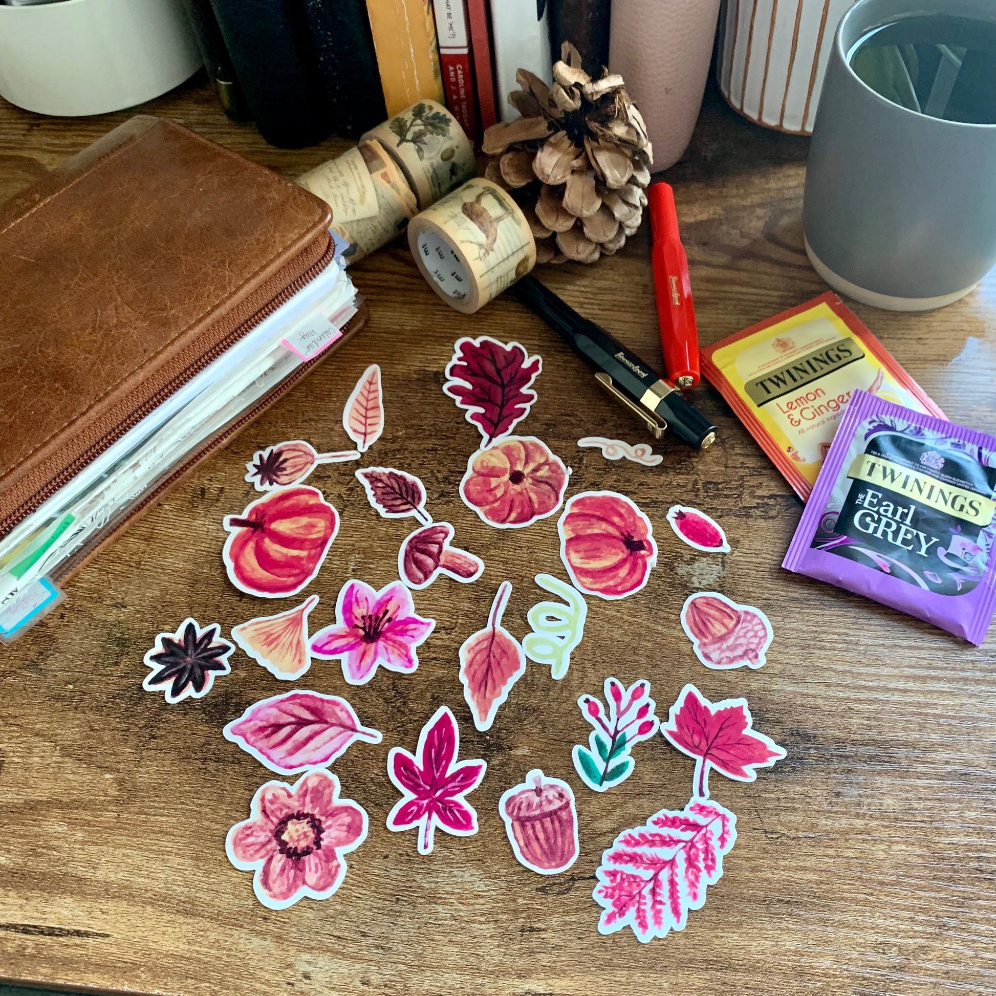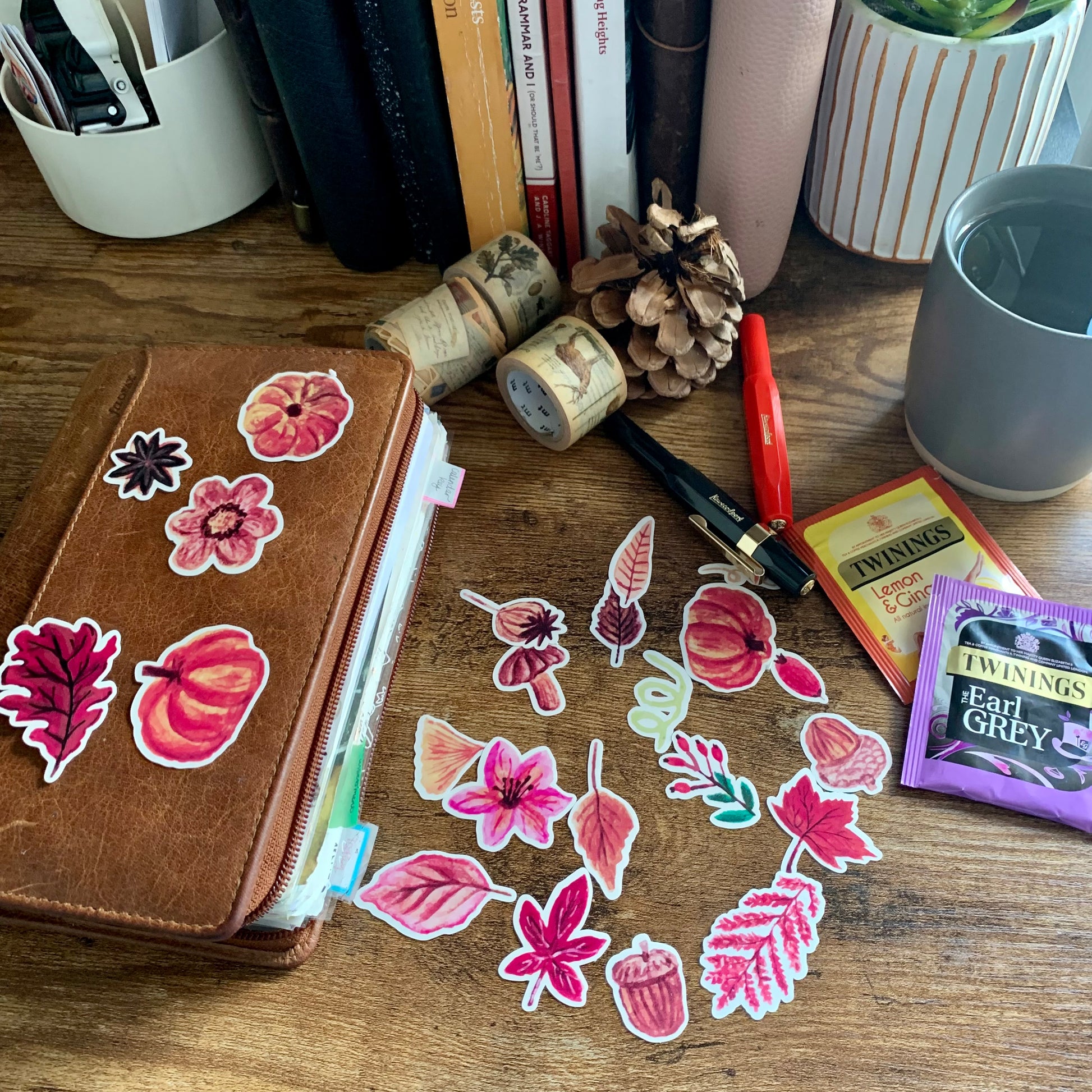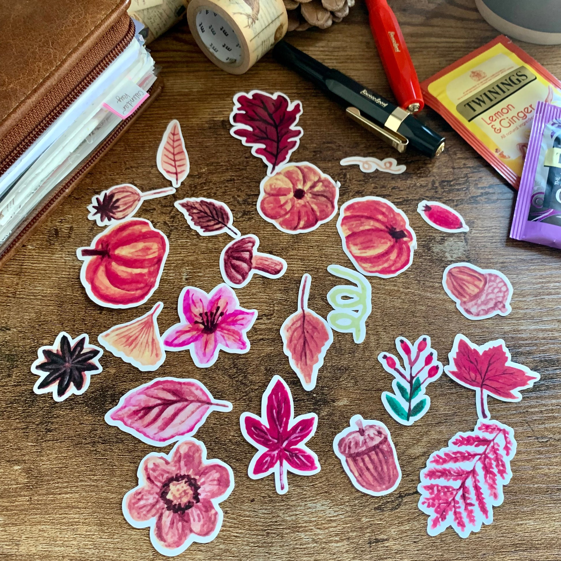 New gorgeous Fall elements sticker flakes printed on Premium Glossy Clear/transparent Sticker Paper great for decorating any planner/journal.