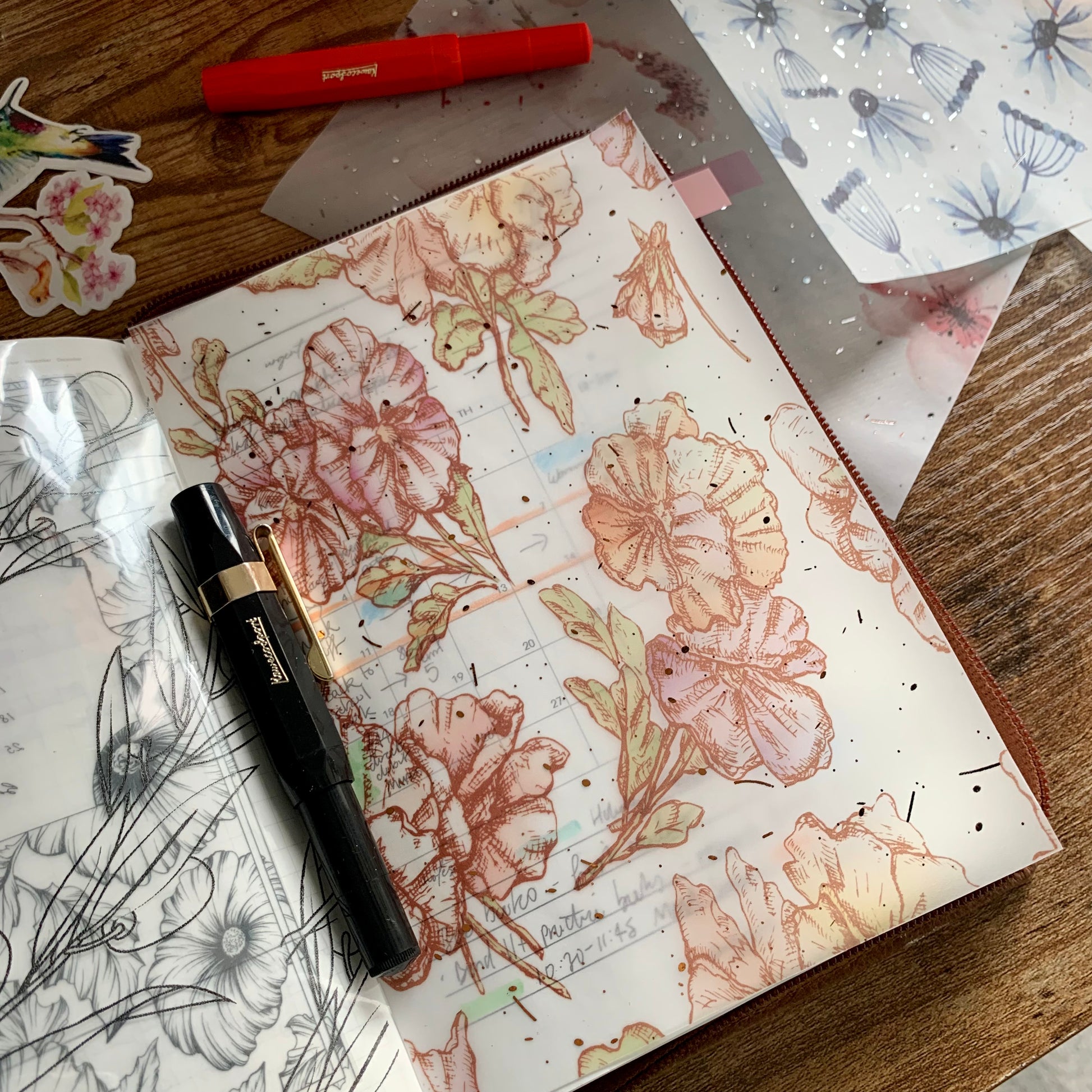 NEW Handmade Pansies Floral print vellum dashboards with hand drawn artwork great for decorating planners and journals.