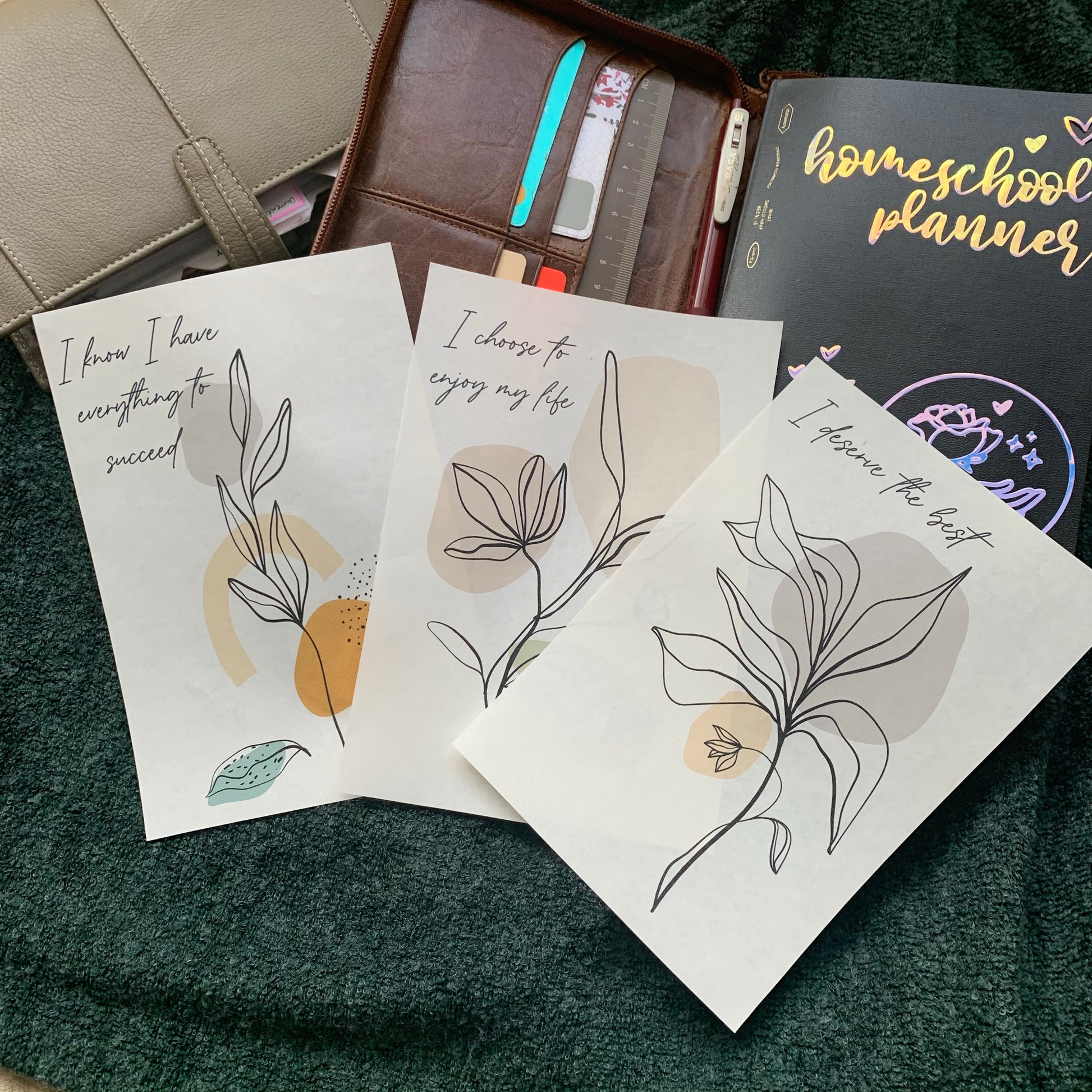 NEW Handmade Abstract art X Affirmation dashboards with hand drawn artwork great for personalising bound planners of notebooks.