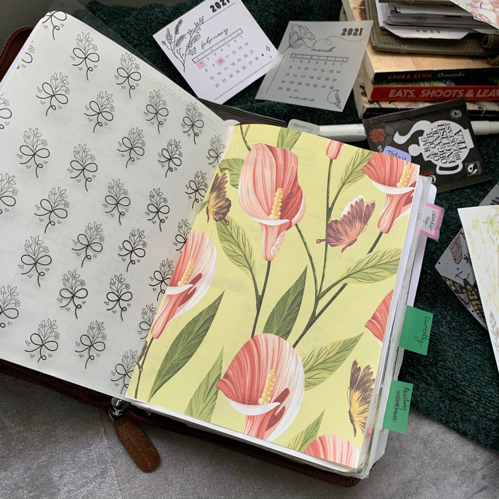NEW Handmade Floral Dashboard with hand drawn artwork great for personalising bound planners of notebooks.