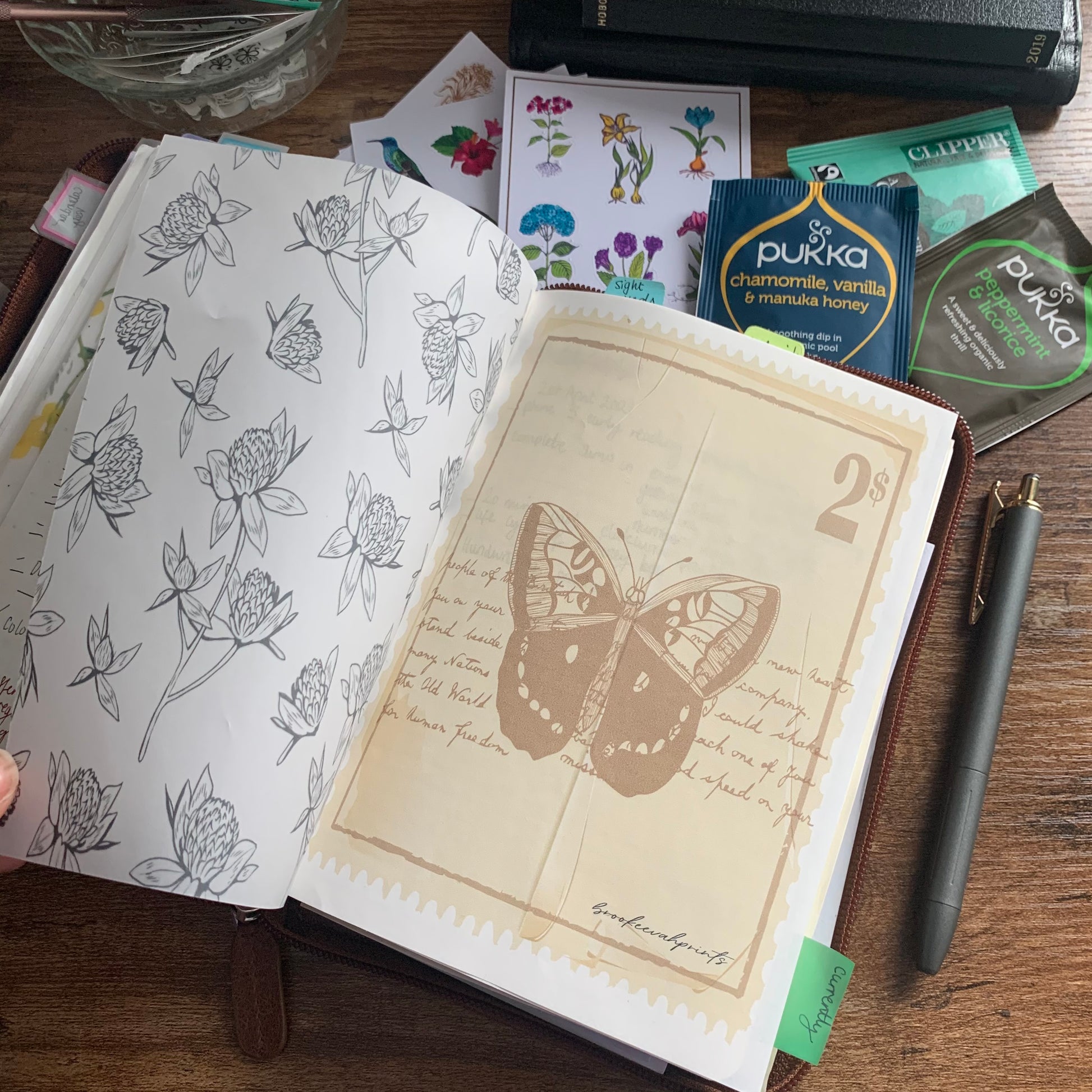 NEW Handmade Butterfly Stamp Dashboard with hand drawn artwork great for personalising bound planners of notebooks.
