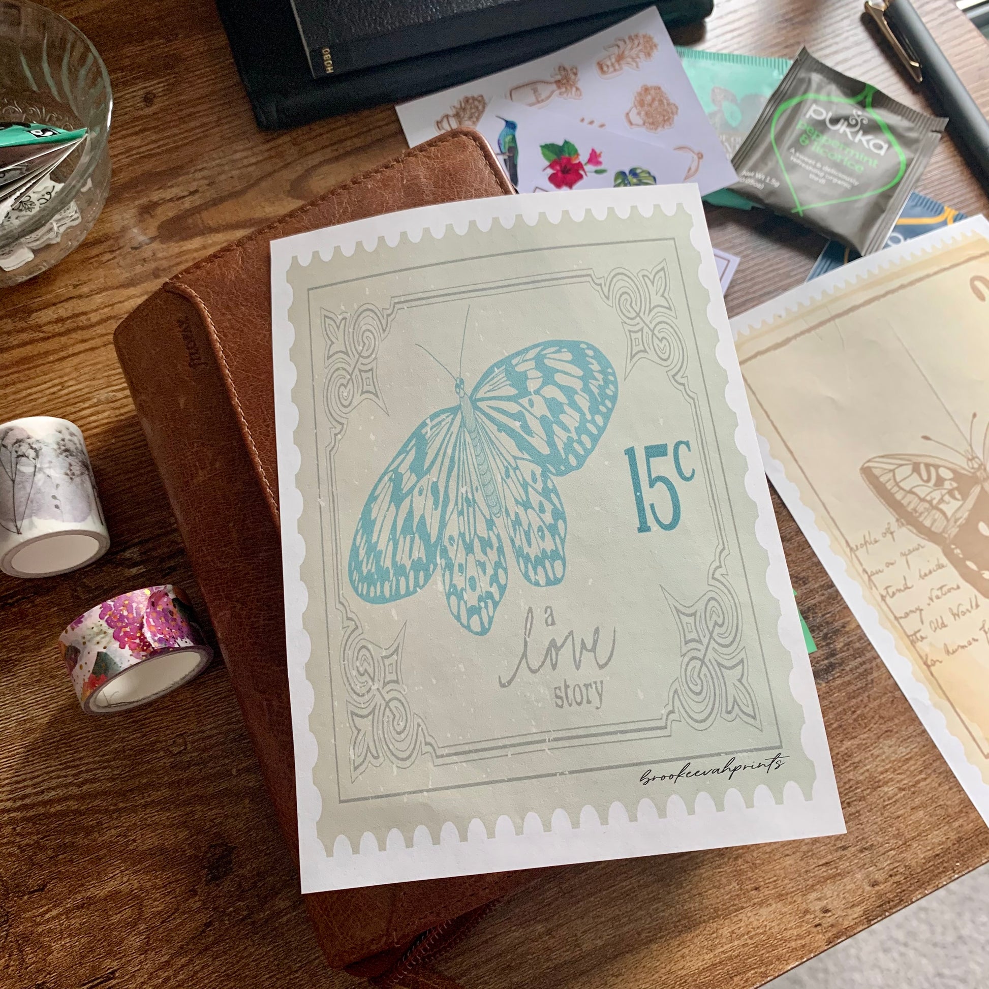 Vintage Inspired Hand Drawn Butterfly Stamp - Tomoe River Paper Planner Dashboards - Scrapbooking Paper - Journal Insert