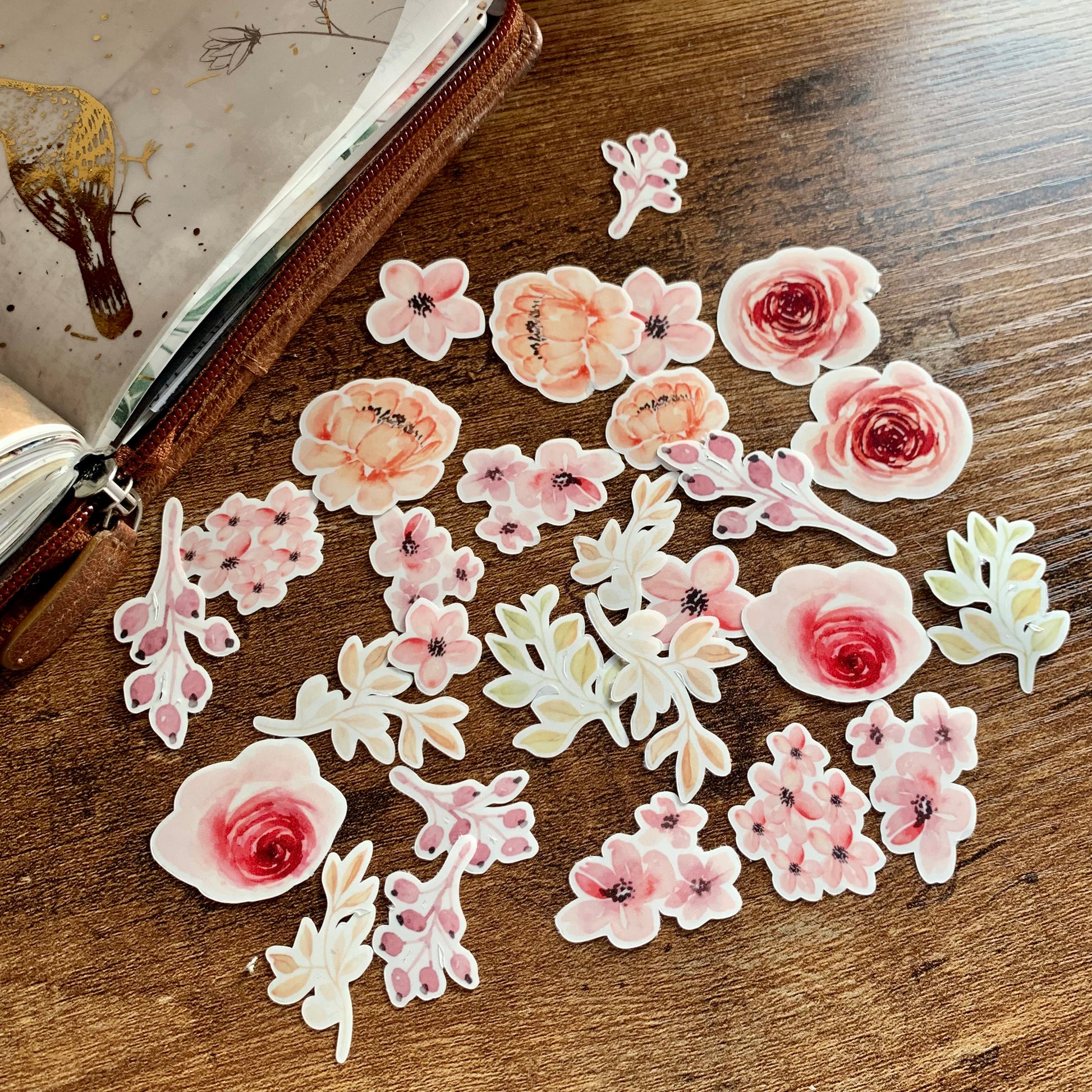 New gorgeous Watercolour floral elements sticker flakes printed on Premium Glossy Clear/transparent Sticker Paper great for decorating any planner/journal.