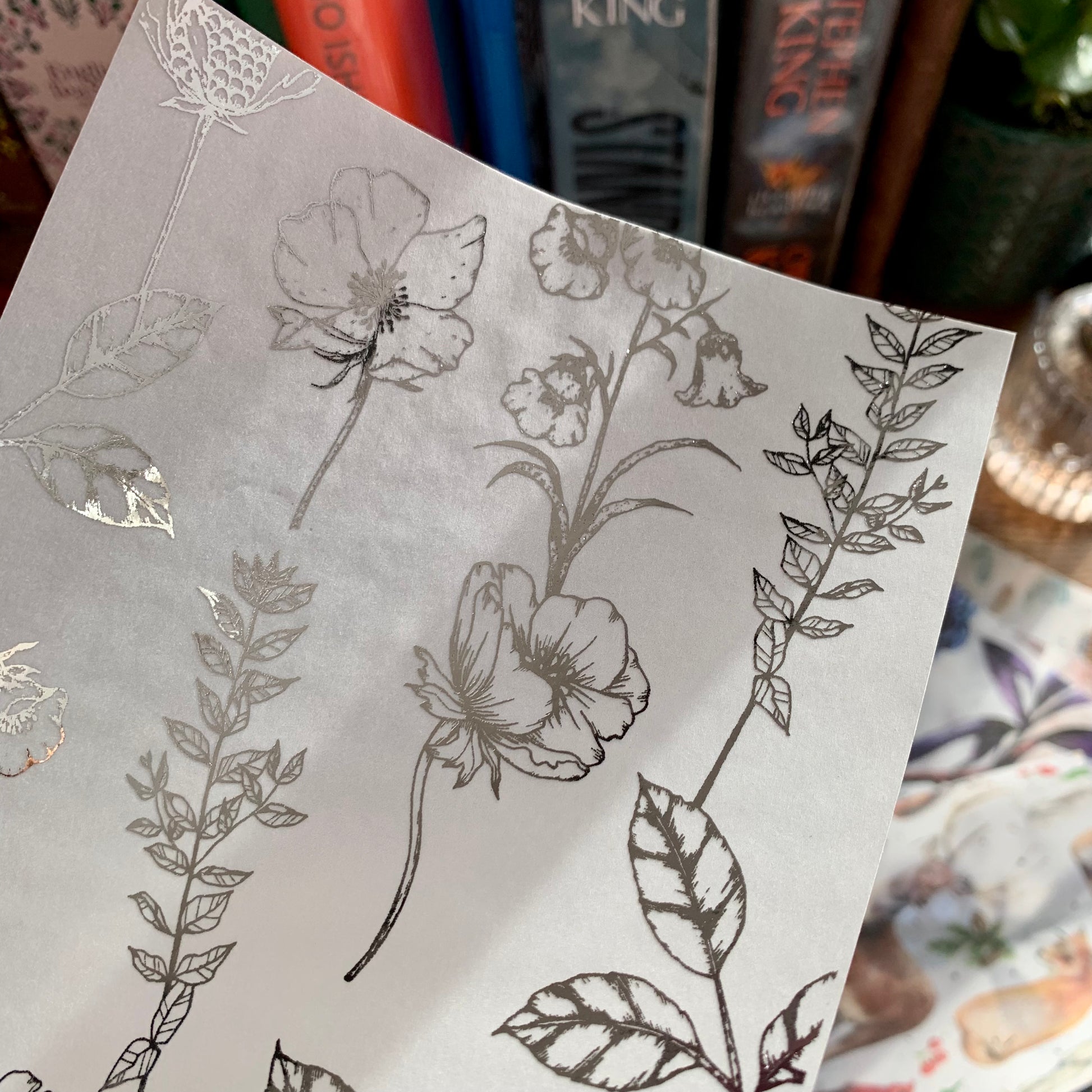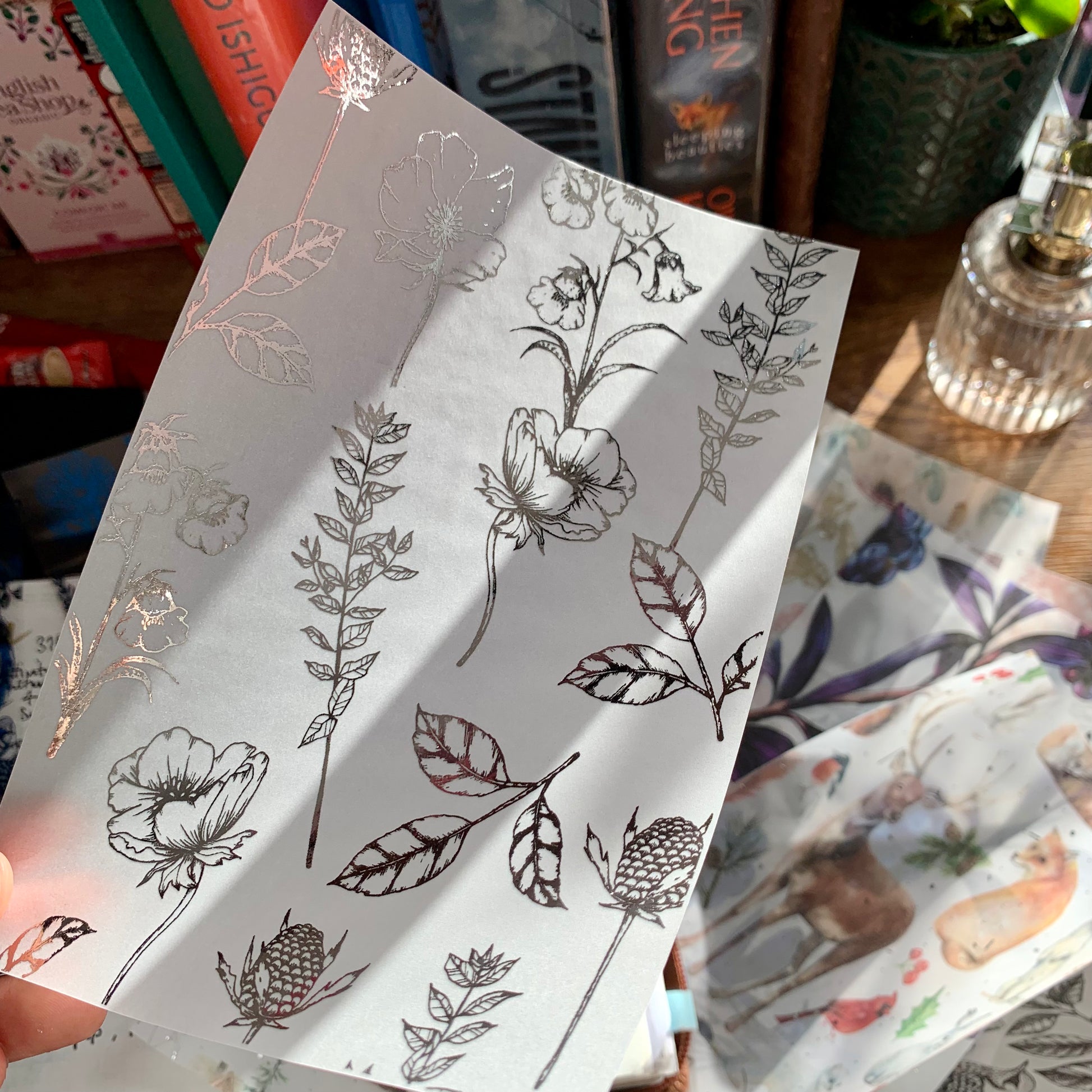 Silver Foiled Botanical Hand Drawn Floral Vellum X Acetate Planner Dashboard - Amelia Snow