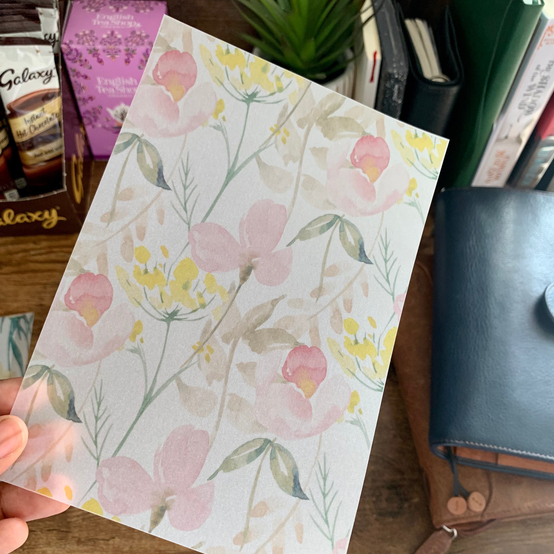 NEW Handmade Watercolour Rose Petal print vellum dashboards with hand drawn artwork great for decorating planners and journals.