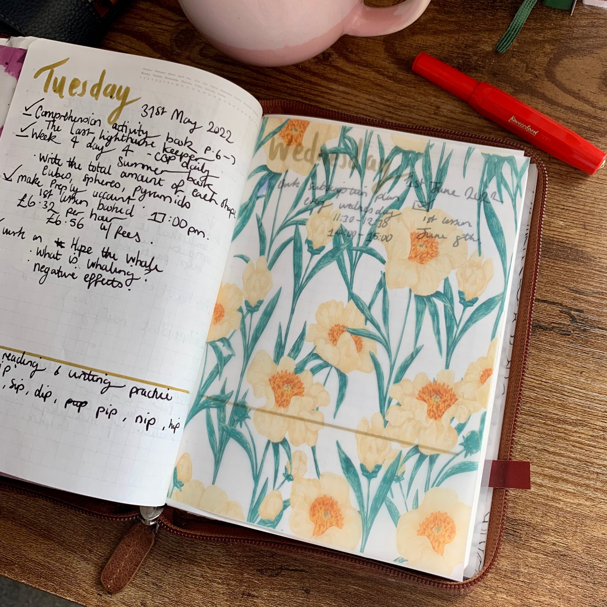 NEW Handmade Watercolour Floral print vellum dashboards with hand drawn artwork great for decorating planners and journals.