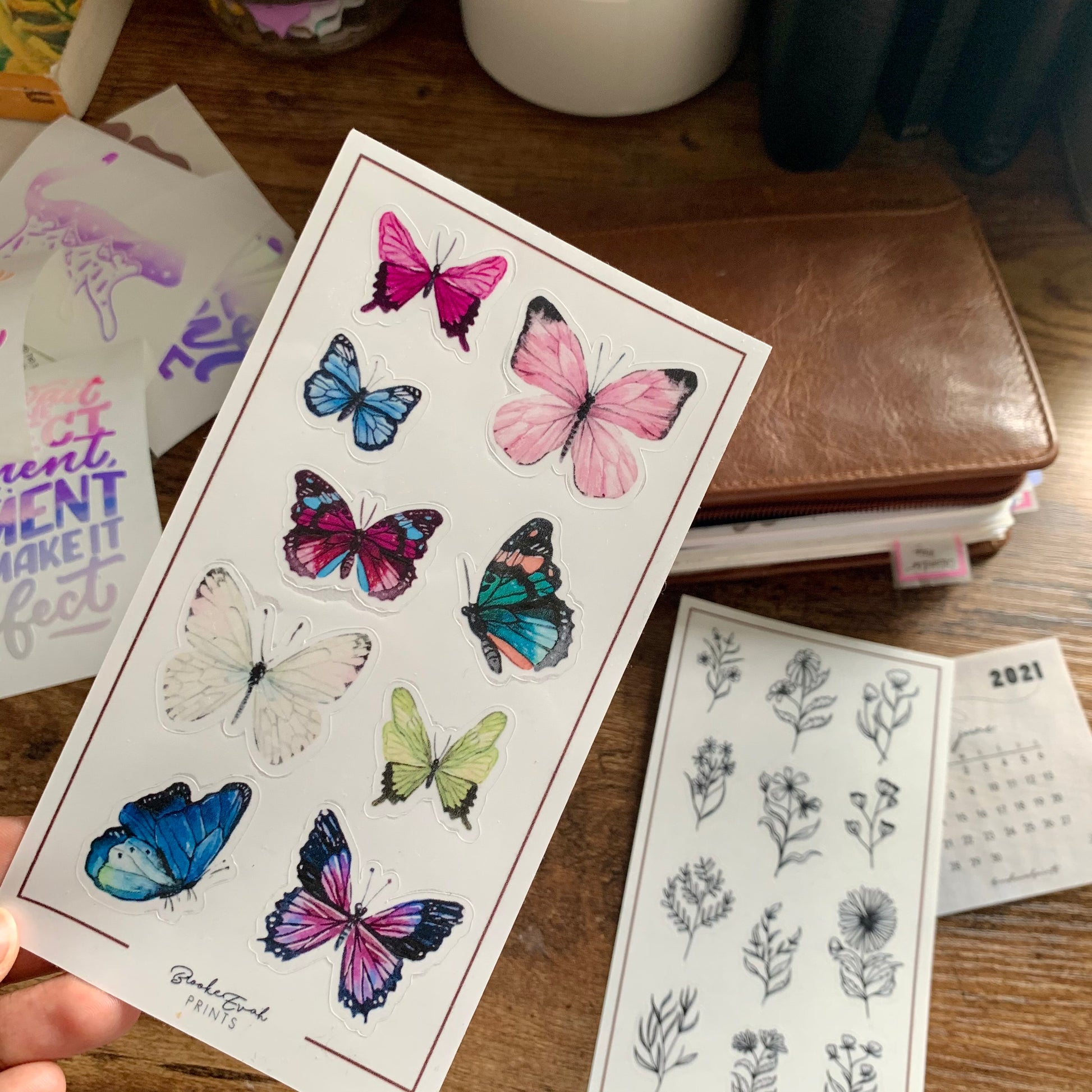New gorgeous Floral & Butterfly stickers printed on Premium Glossy Clear/transparent Sticker Paper great for decorating any planner/journal.